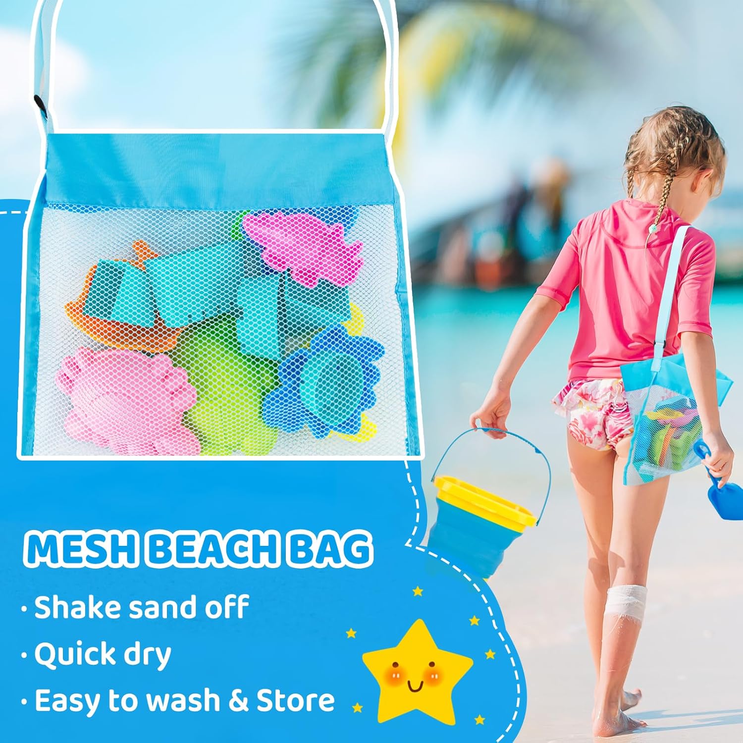Collapsible Seashore Bucket: The collapsible seashore bucket is made from thick silicone, sturdy and moveable, straightforward to retailer all of the equipment, nice for youths seashore journey and outside actions.