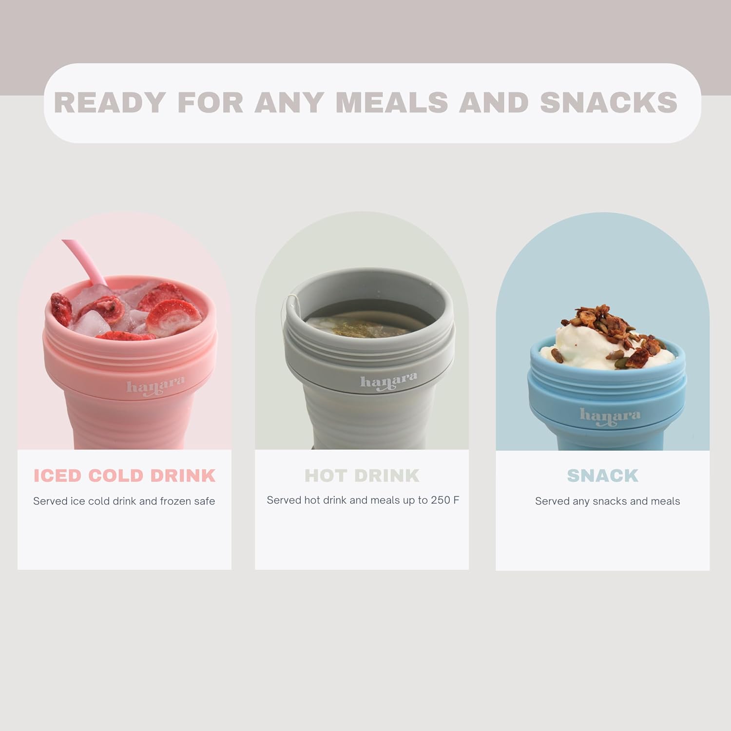 REDUCE THE USES OF DISPOSABLE CUPS: Scale back single-use plastic with this reusable, compact journey cup that’s good for reducing down on disposable cups whereas staying fashionable and eco-conscious. Take the step in direction of a greener, extra handy life-style and luxuriate in your drinks anyplace with the Hanara Collapsible Cup.
