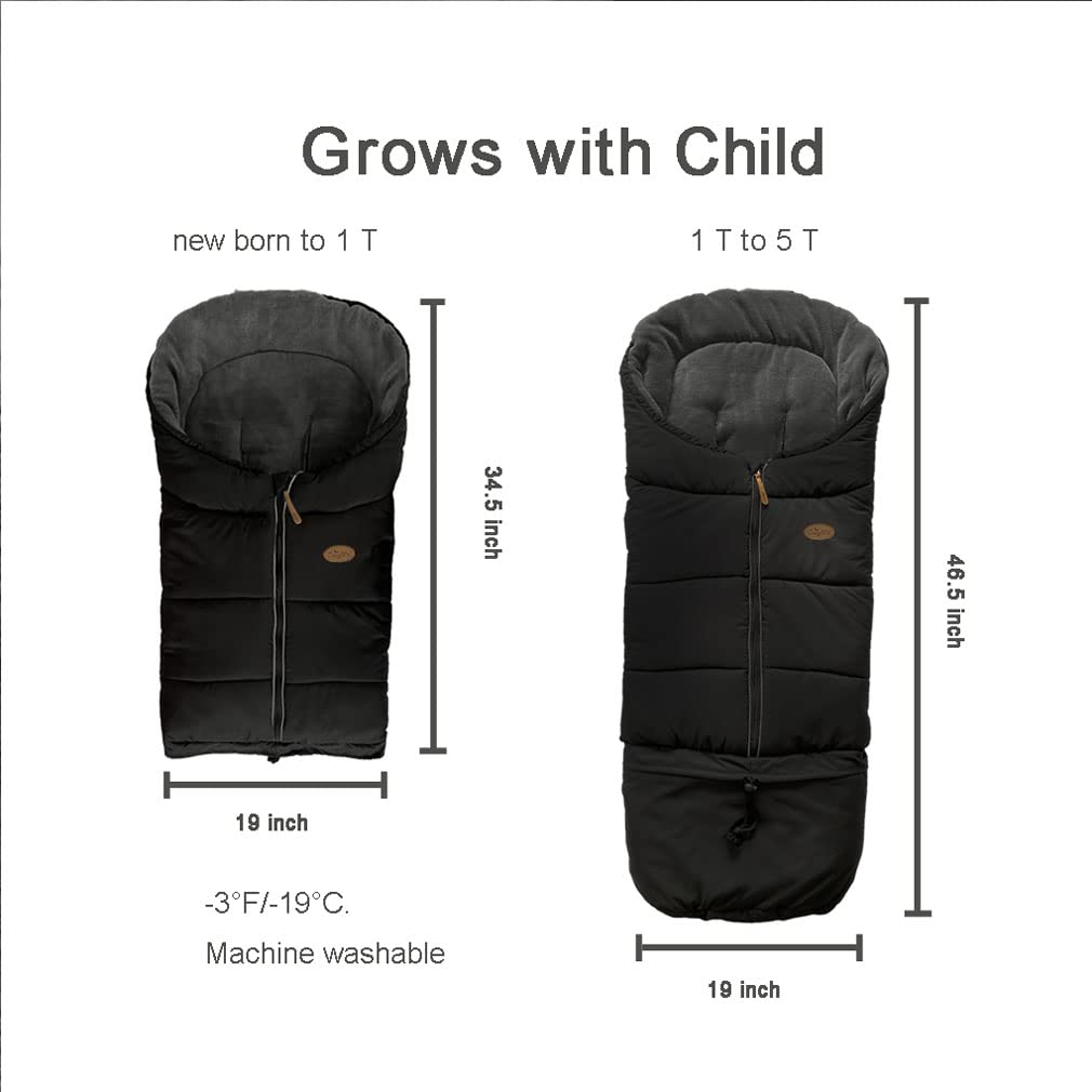 FITS FOR 0-5T CHILD DUE TO UNIQUE LENGTH ADJUSTABLE DESIGN: two sections stroller bunting bag is removable in line with your child top ,very simple ,all you want is zip it on and off.