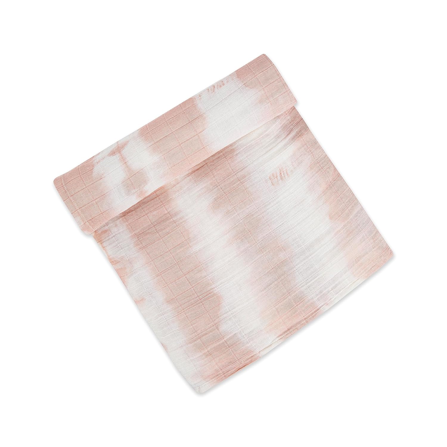SIZE: One 47″ x 47″ pre-washed cotton muslin swaddle blanket in pink tie-dye print