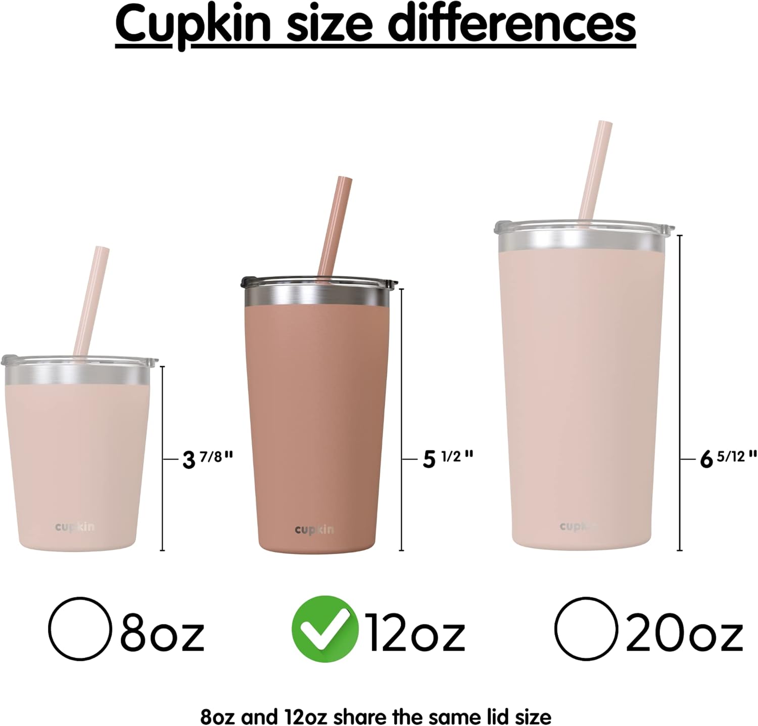 CUPKIN Toddler Tumblers, The Original 12 oz Stackable Stainless Steel Cups, Set of 2 Powder Coated Insulated Kids Water Bottle Alternative + BPA Free Lids + Reusable Silicone Straws (Brown + Peach)