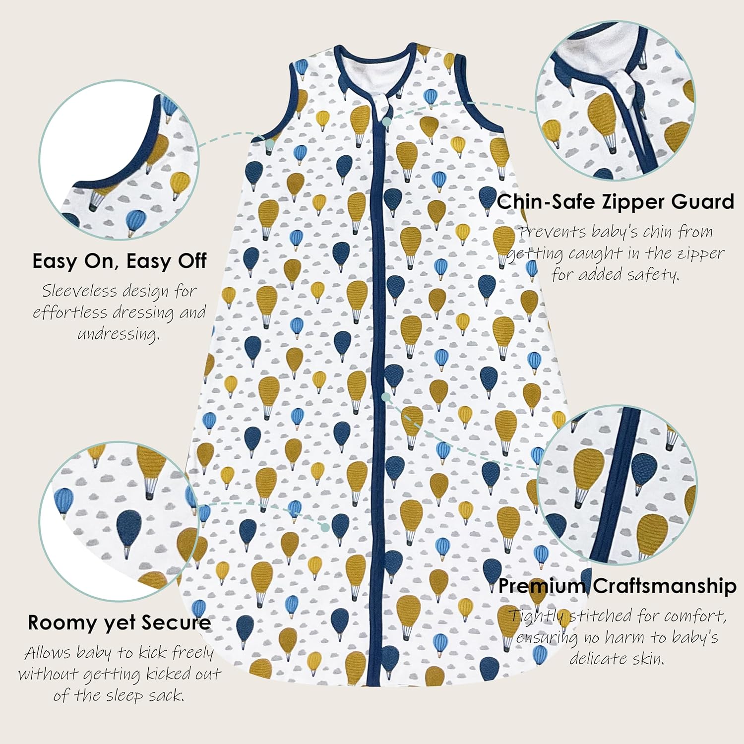 Luxuriously Mushy: Crafted from premium 100% cotton, our child sleep sacks provide unparalleled consolation and breathability. The sleeveless design and optimum TOG score of 0.5 guarantee your child stays heat and cushty with out the danger of overheating
