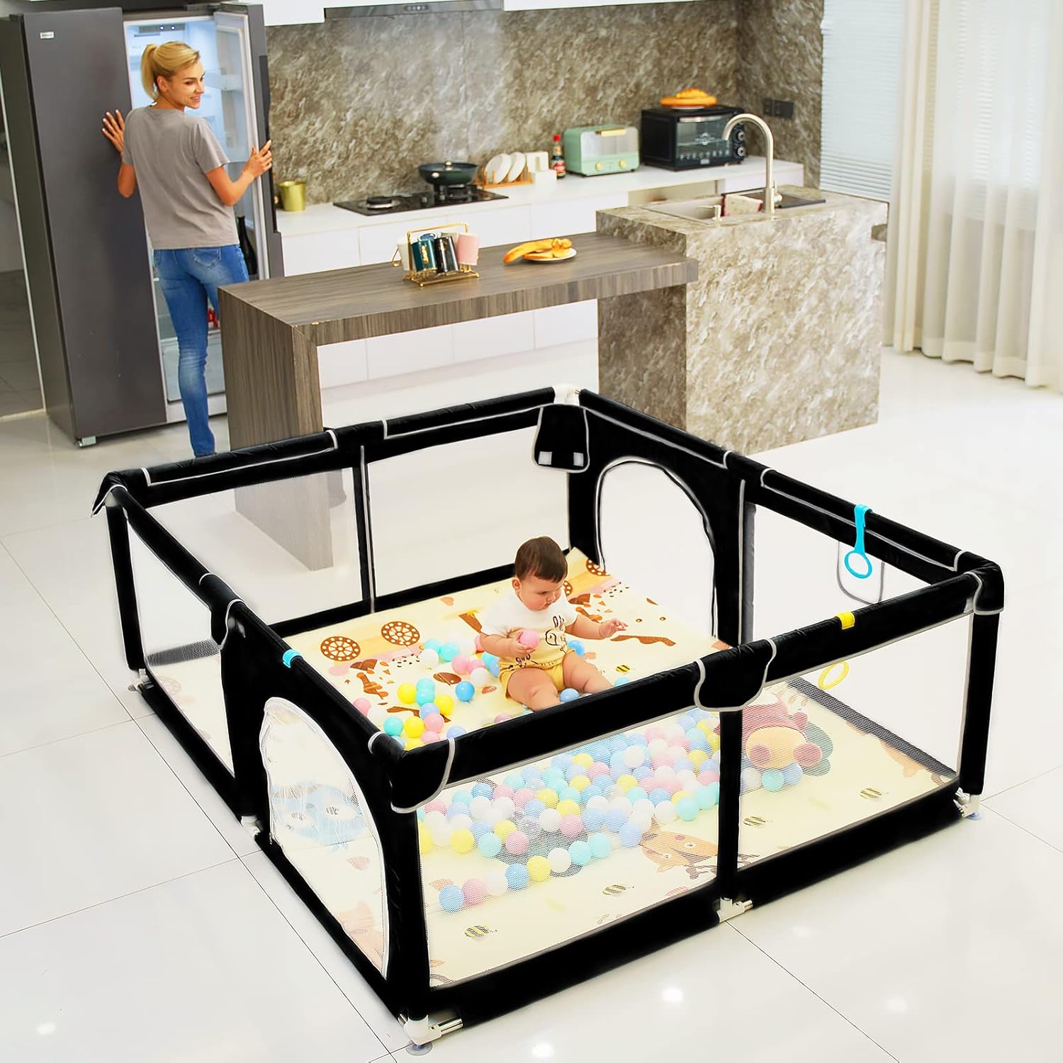 Protected & Sturdy Development:Constructed from sturdy Oxford cloth and breathable mesh for visibility and airflow; thick foam padding across the edges protects your baby from bumps; non-slip pads present added stability for a safe play space