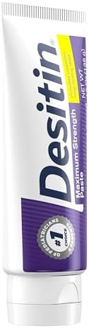 4.8-ounce tube of Desitin Maximum Strength Diaper Rash Paste with 40% zinc oxide works on contact to treat and help prevent baby diaper rash discomfort