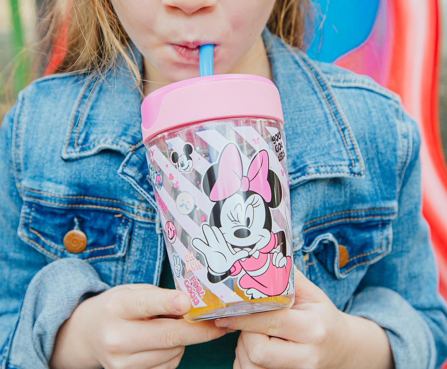 Disney Minnie Mouse Kids Plastic Travel Tumbler With Spill-Resistant Lid and Reusable Straw | Holds 18 Ounces