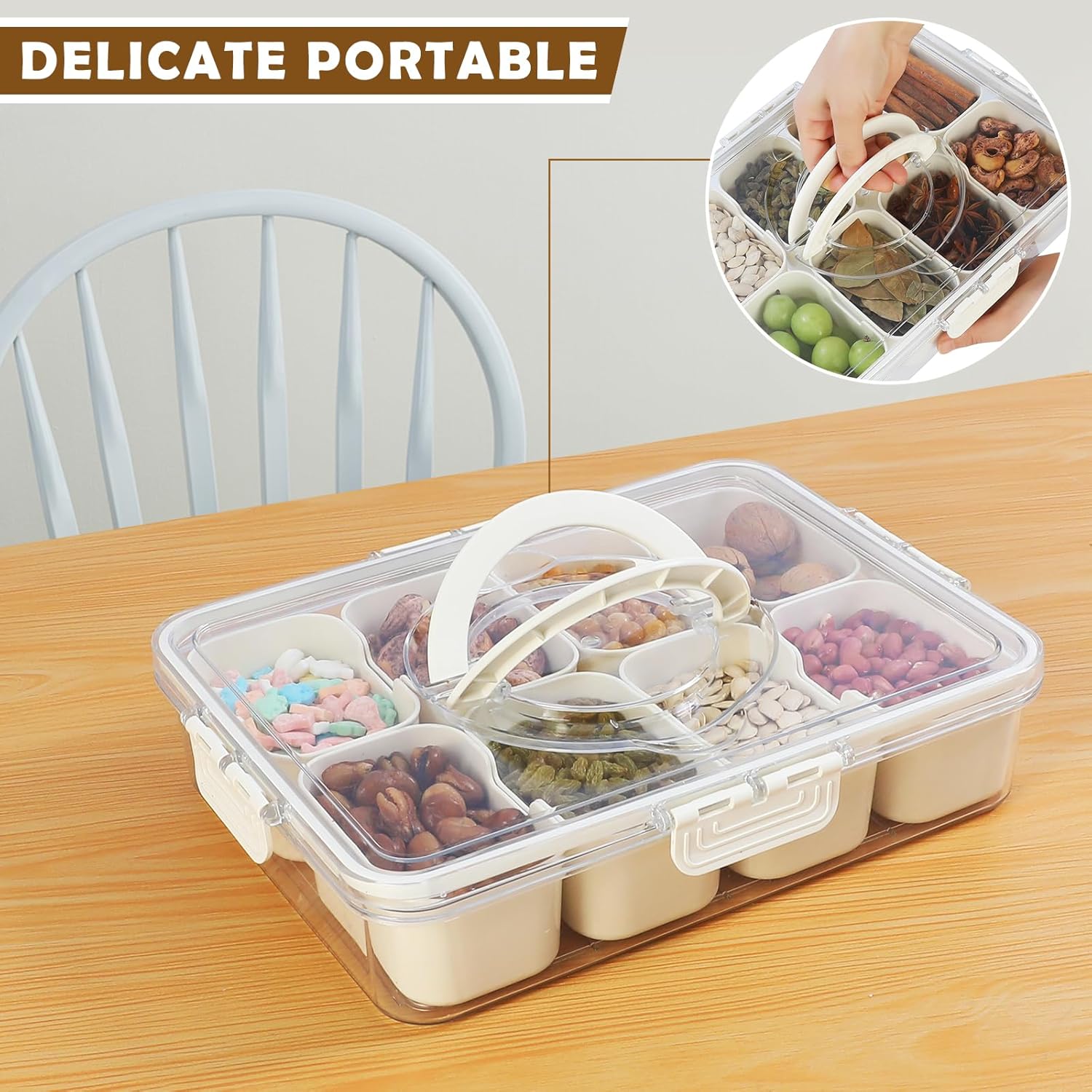 【Handy Serving Tray】Say goodbye to messy snacking with our handy serving tray design. Full with a lid and deal with, this snack field permits for straightforward transport and serving, making certain your snacks keep recent and accessible wherever you go. Excellent for events, journey, picnics, and on-the-go snacking