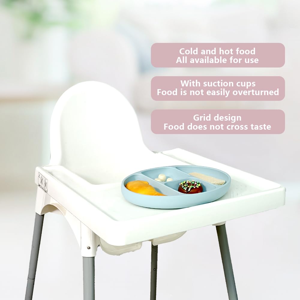Non-Suction Silicone Dishware FeedingPlate (No Lids), 100% Meals Grade for Toddlers and Youngsters, Dishwasher and Microwave Secure BPA Free