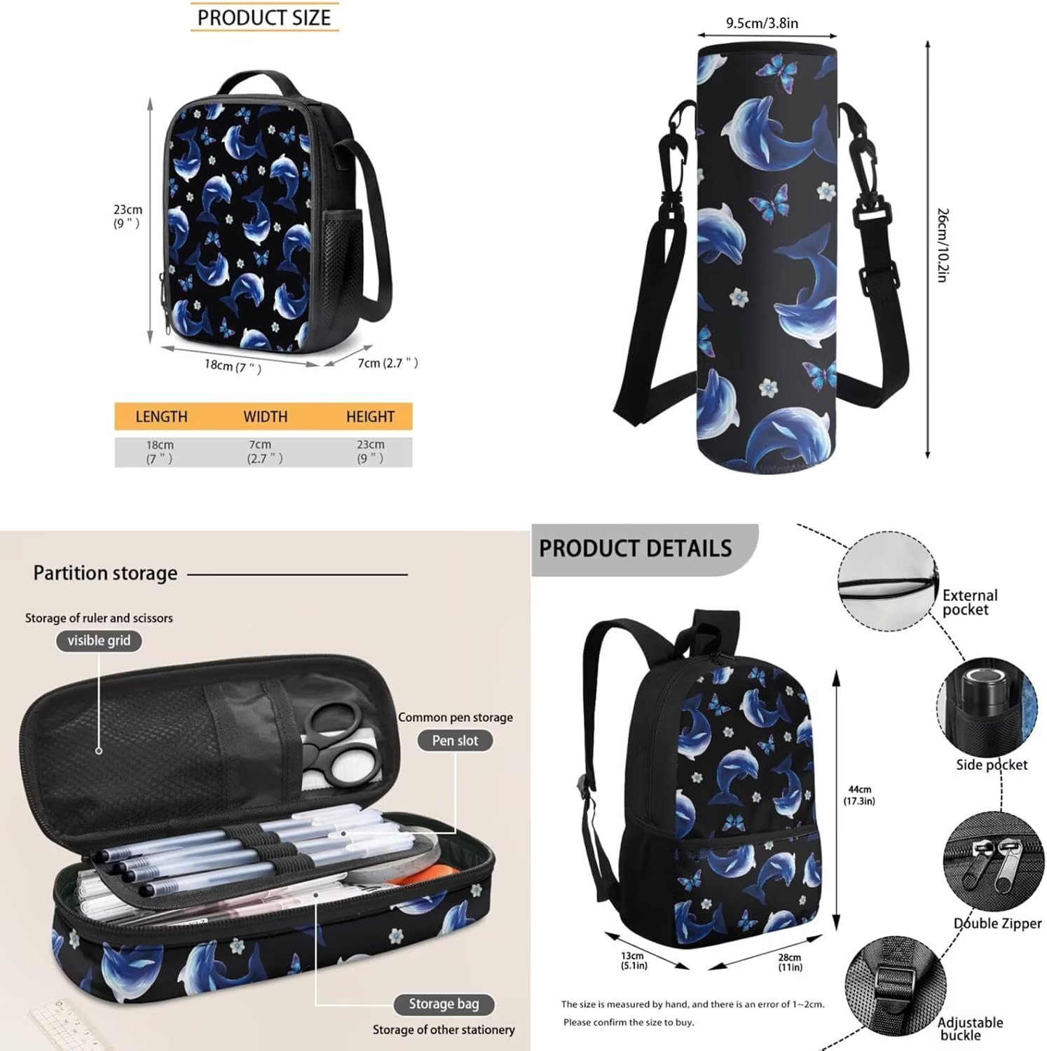 Schoolbag 4 in 1:4 items set faculty provides included 1 piece 17 inch faculty bag + 1 piece lunch bag + 1 piece water bottle sleeve + 1 piece pencil pen case.This shoulder bag is made of top quality polyester cloth, the fabric is snug and tender, not simple to fade.