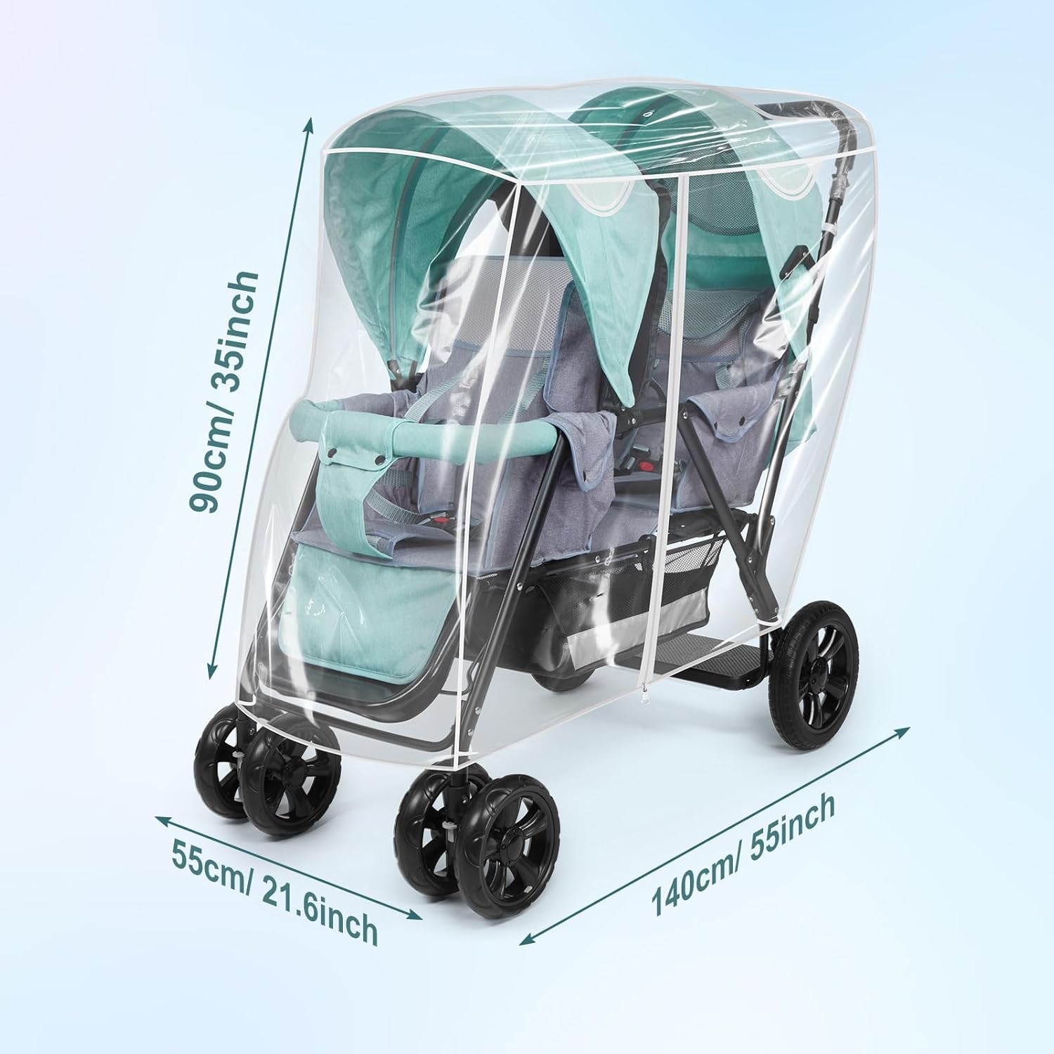 【Common Measurement and Straightforward Set up】Our rain cowl for double stroller is common dimension to suit most tandem twin strollers, which could be simply put in and glued with velcro straps on the again.