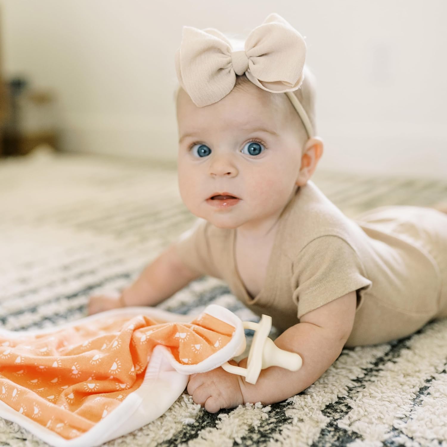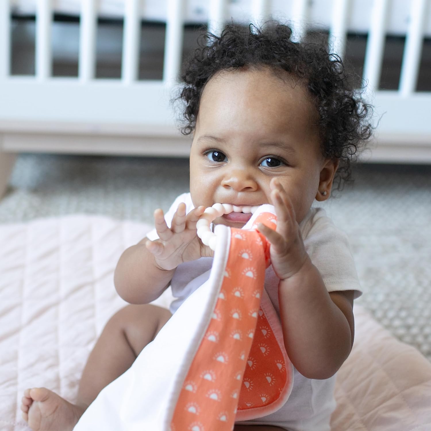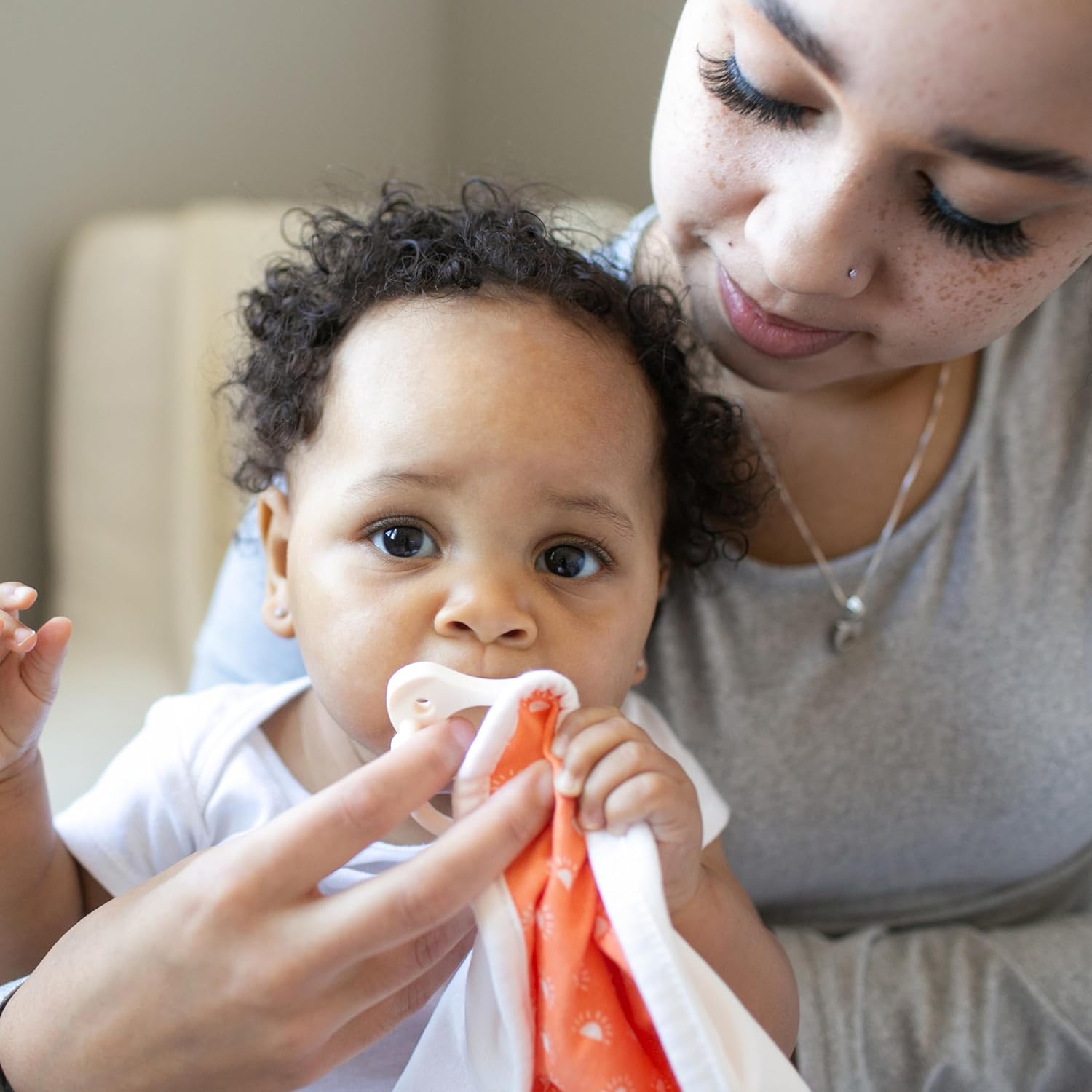 Dr. Brown’s Lovey Blanket with Beaded Teether Ring and HappyPaci 100% Silicone One-Piece Pacifier, Soothing Safety Blanket Set for Child, Peach Suns, 0m+