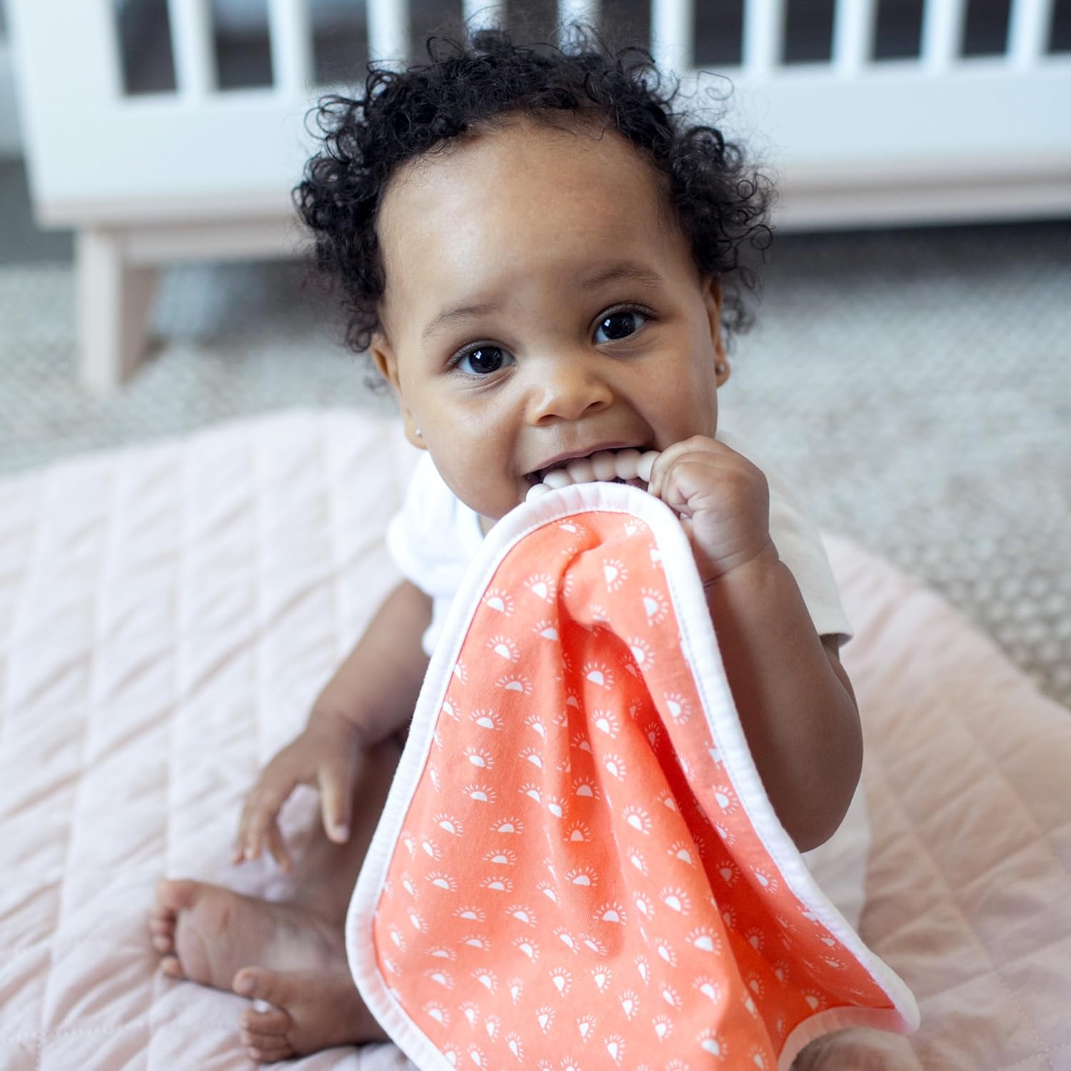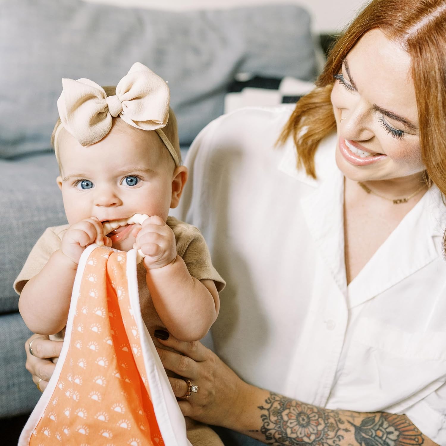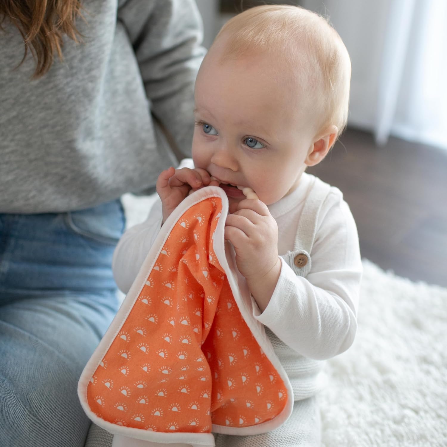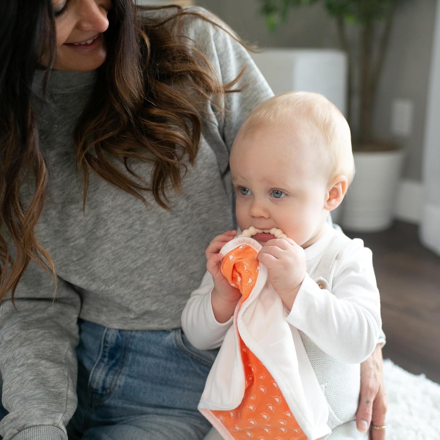 Dr. Brown’s Lovey Blanket with Beaded Teether Ring and HappyPaci 100% Silicone One-Piece Pacifier, Soothing Safety Blanket Set for Child, Peach Suns, 0m+
