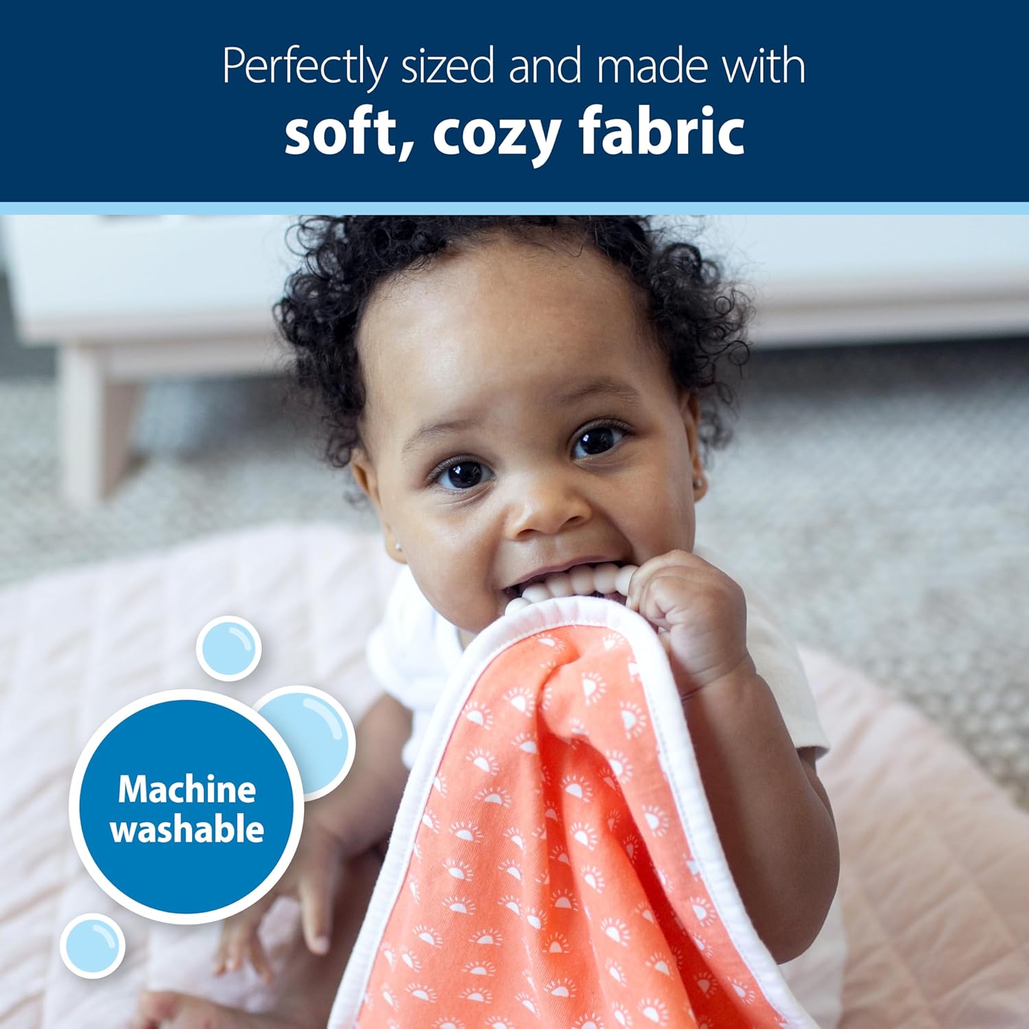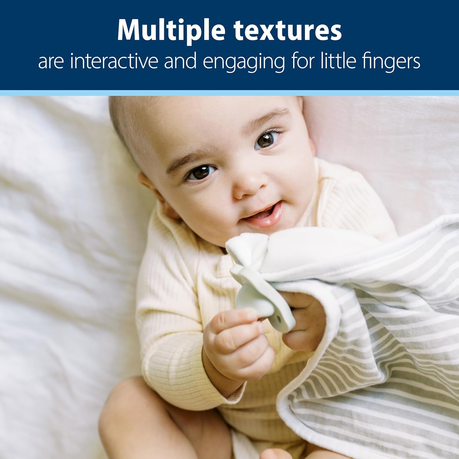 Assist child self soothe and maintain their pacifier or teether shut by with Dr. Brown’s Lovey Blanket Pacifier and Teether Holder. The safety blanket contains a snap closure to maintain a pacifier or teether securely hooked up and simply accessible. The Lovey Blanket set consists of Dr. Brown’s HappyPaci Silicone Pacifier (0-6m), a light-weight 100% silicone pacifier formed like Dr. Brown’s bottle nipple and a Flexees 100% Silicone Beaded Teether Ring (3m+) to therapeutic massage and soothe sore gums. Dr. Brown’s Lovey Blanket is twin sided and options comfortable cotton on one facet and comfortable fuzzy cloth on the opposite to maintain child comforted whereas exploring new textures and practising motor abilities. The Lovey Blanket is mechanically cleanable and the HappyPaci and Flexees Beaded Teether ring are dishwasher (prime rack) and sterilizer protected. Child blanket unfolds to 12 x 12 inches.