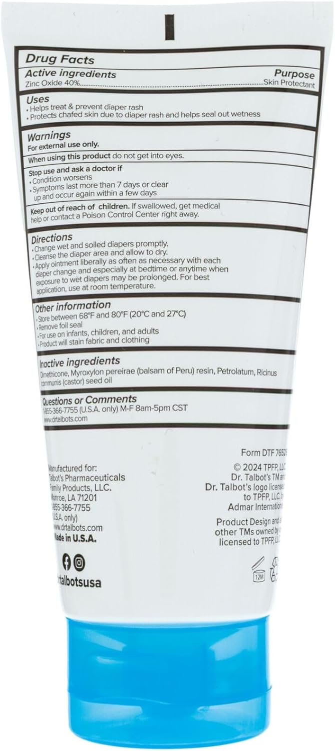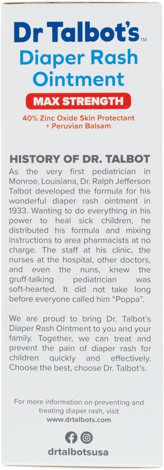 GENTLE DIAPER RASH RELIEF FOR INFANTS: Dr. Talbot’s Diaper Rash Ointment Max Power offers on the spot safety and aid from signs attributable to diaper rash together with chafing, irritated pores and skin and extra