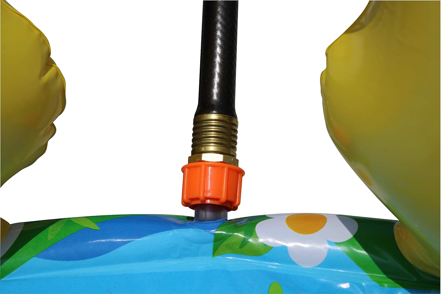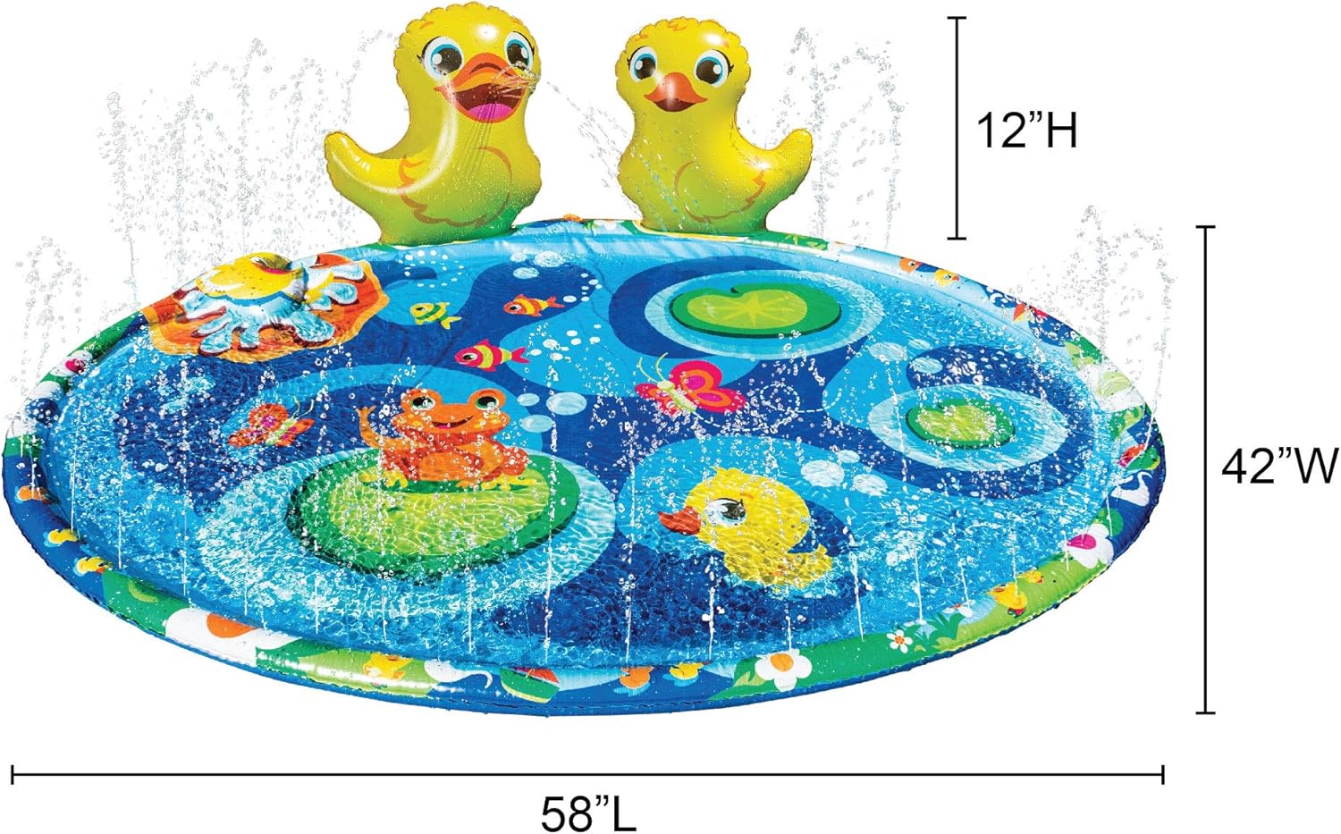 Splish-splash along with your ducky pals within the Ducky Pond Splash Mat. This splash mat encompasses a water-filled sprinkling rim and inflatable ducky water fountain. Little ones can press on the stomper pad to play with the stream of the water sprinkles from for added interactive water play.