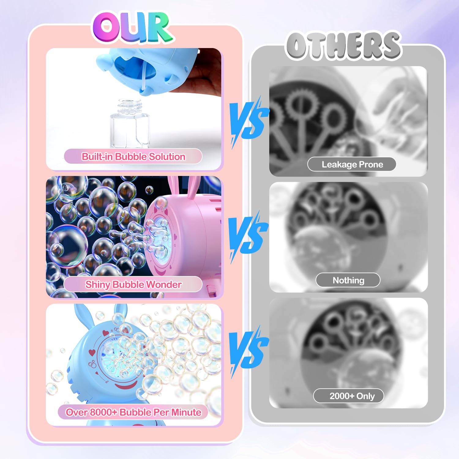 Leak-Proof & No Mess: The leakproof design and built-in bubble resolution compartment guarantee over an hour of steady bubble enjoyable—no spills, no sticky palms!
