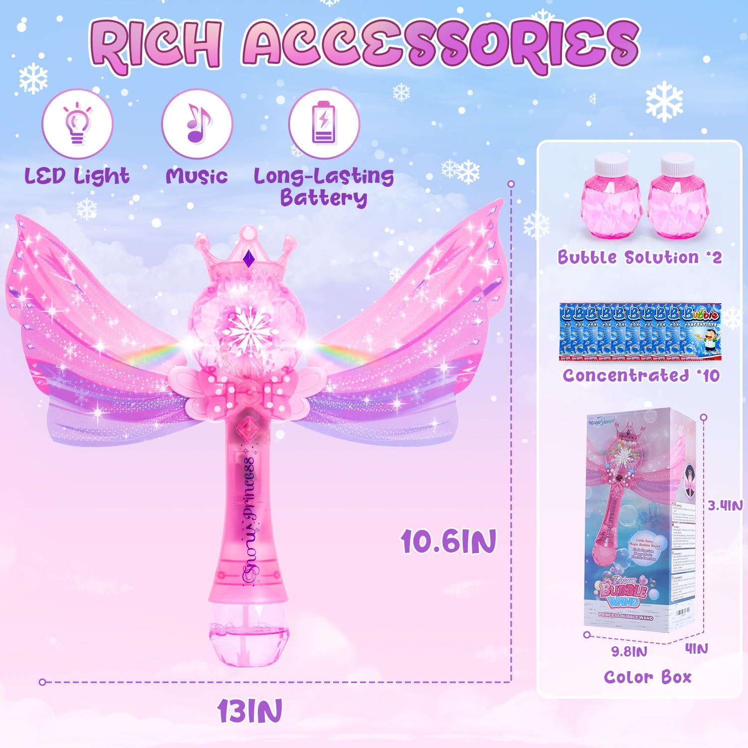 Princess Magic Theme: Ignite your infant’s creativeness with the fairy tale-inspired design of the Bubble Wands. That includes a pink fairy wand, a frosty snowflake, a glowing crown, and removable wings, this enchanting bubble toy for teenagers will captivate your kid’s coronary heart.