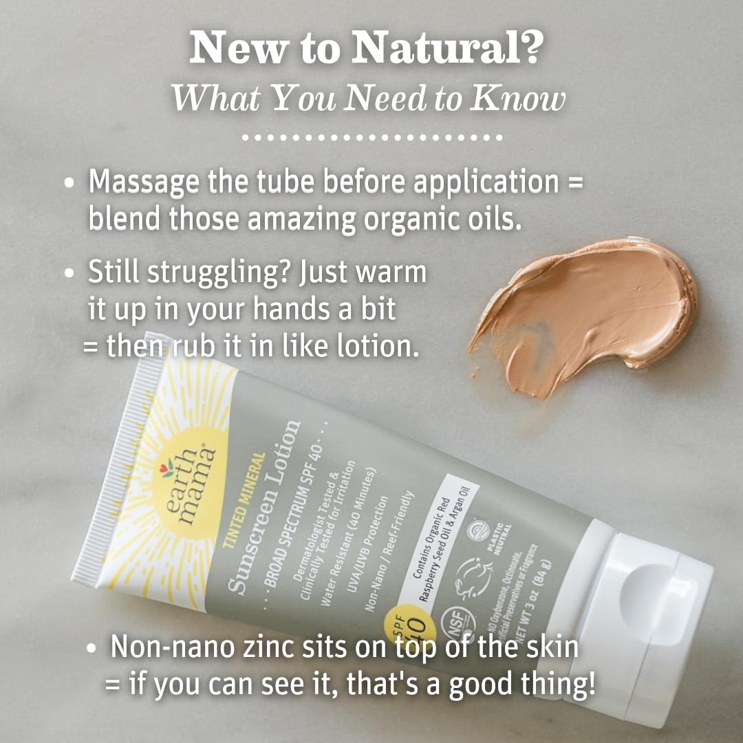 NO WORRISOME CHEMICALS: Formulated with none chemical sunscreens, synthetic perfume or dimethicone, Earth Mama’s Tinted Mineral Sunscreen Lotion is a reef-friendly sunscreen, Leaping Bunny Licensed and pediatrician examined, dermatologist examined and clinically examined for irritation.