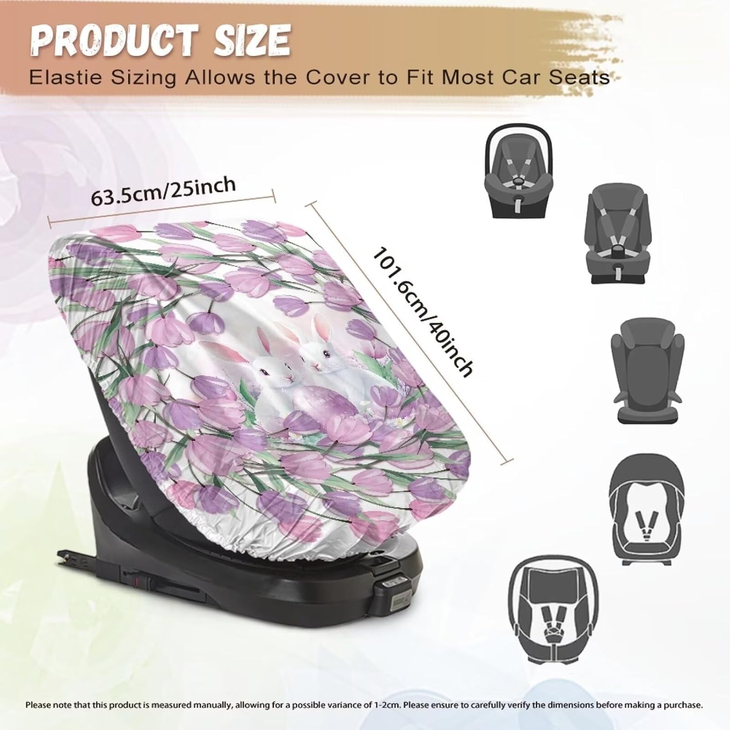 Easter Bunny Baby Car Seat Sun Shade Cover, Infant Car Seat Sun Protection Cover, UV Block Auto Seats Heat Protector Keeps Baby’s Carseat at Cooler Temperature, Car Accessories