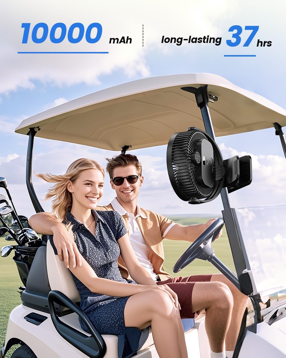 【Max 37 Hrs Working Time + Cellphone Charger On-The-Go】: By no means select between coolness and connectivity! This clip-on fan packs an enormous 10000mAh battery, blasting max 37 hours of cooling and doubling as a lifesaving energy financial institution to cost your telephone whereas it runs! With its USB-C port, it affords 10W charging pace. Thus the fan will get charged 50% quicker. It will get totally charged inside solely 6.5 hours.