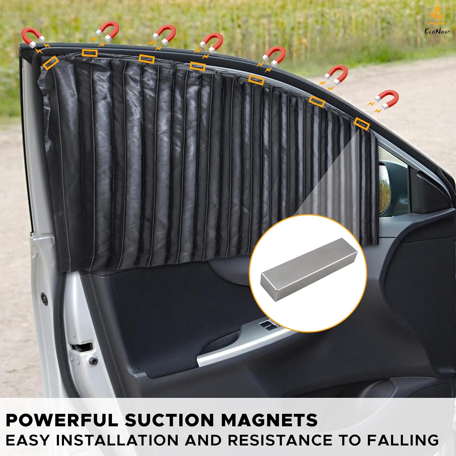 Superior Solar Safety: EcoNour entrance magnetic window automotive curtains successfully block UV rays and intense daylight, offering important safety in your child and stopping solar injury. The light-weight magnetic design permits home windows to be opened for recent air whereas nonetheless providing protection.