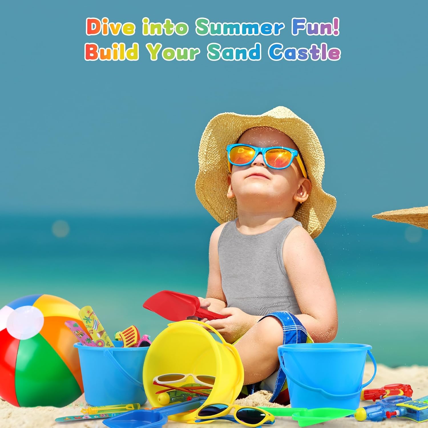 Wide range set: this summer time pool occasion favors set contains 12 seashore buckets with shovels in crimson, yellow, blue, and inexperienced, 3 of every coloration, 12 inflatable seashore balls, 22 cm diameter when inflated, 12 sun shades in 6 colours with colourful lenses, 12 random coloration mini water weapons, 12 summer-themed tattoo sheets with 12 small tattoos per sheet, 12 completely different styled slap bracelets, and 12 bubble machines in 6 colours, sufficient for seashore occasion use