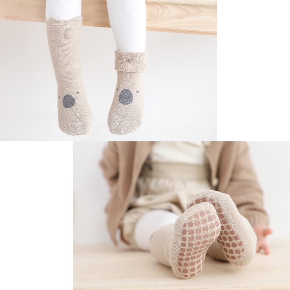 Exegawe Baby Non Slip Socks Winter 5 Pairs Kid Thick Warm Crew Socks with Grips
