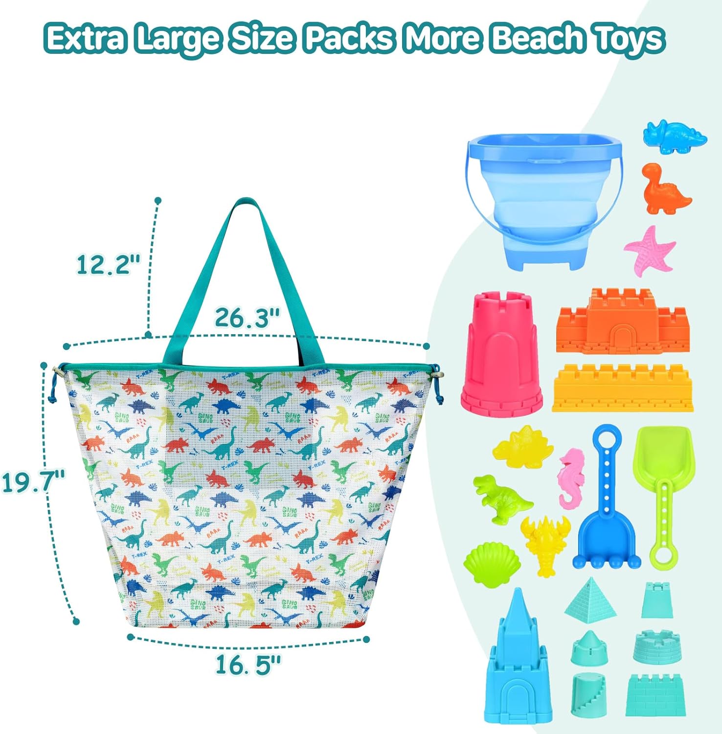 Additional Giant Dimension Pack Extra Seashore Toys: Spacious 26.3″ L x 19.7″ H x 9.1″ W, the massive mesh seaside bag holds as much as 15.85 Gal; Suits shovels buckets floats and all of your seaside day necessities; Good for sandcastles seashell gathering and household enjoyable; Roomy sufficient for towels sunscreen and snacks too; Verify the additional massive measurement sand toy bag to ensure it’s proper to your crew