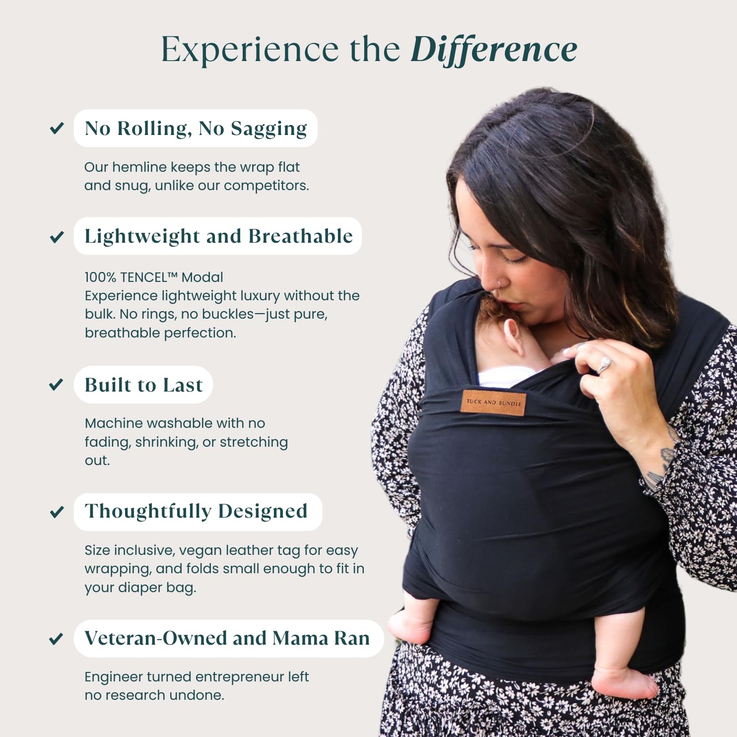 Tuck and Bundle is a mama-run and veteran-owned firm, and we’re proud to say that our wraps are made totally within the USA (designed with care in Texas and responsibly made in California).