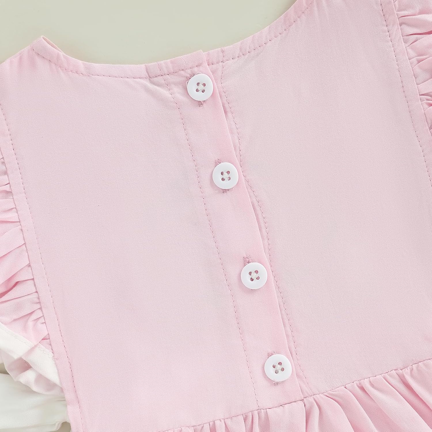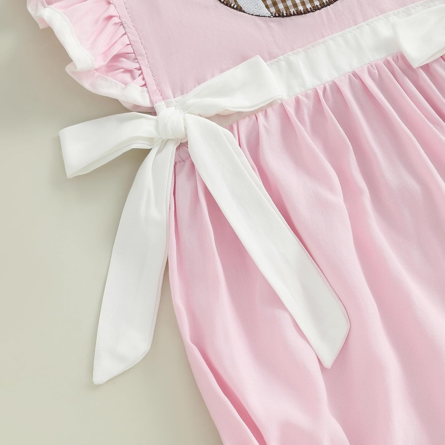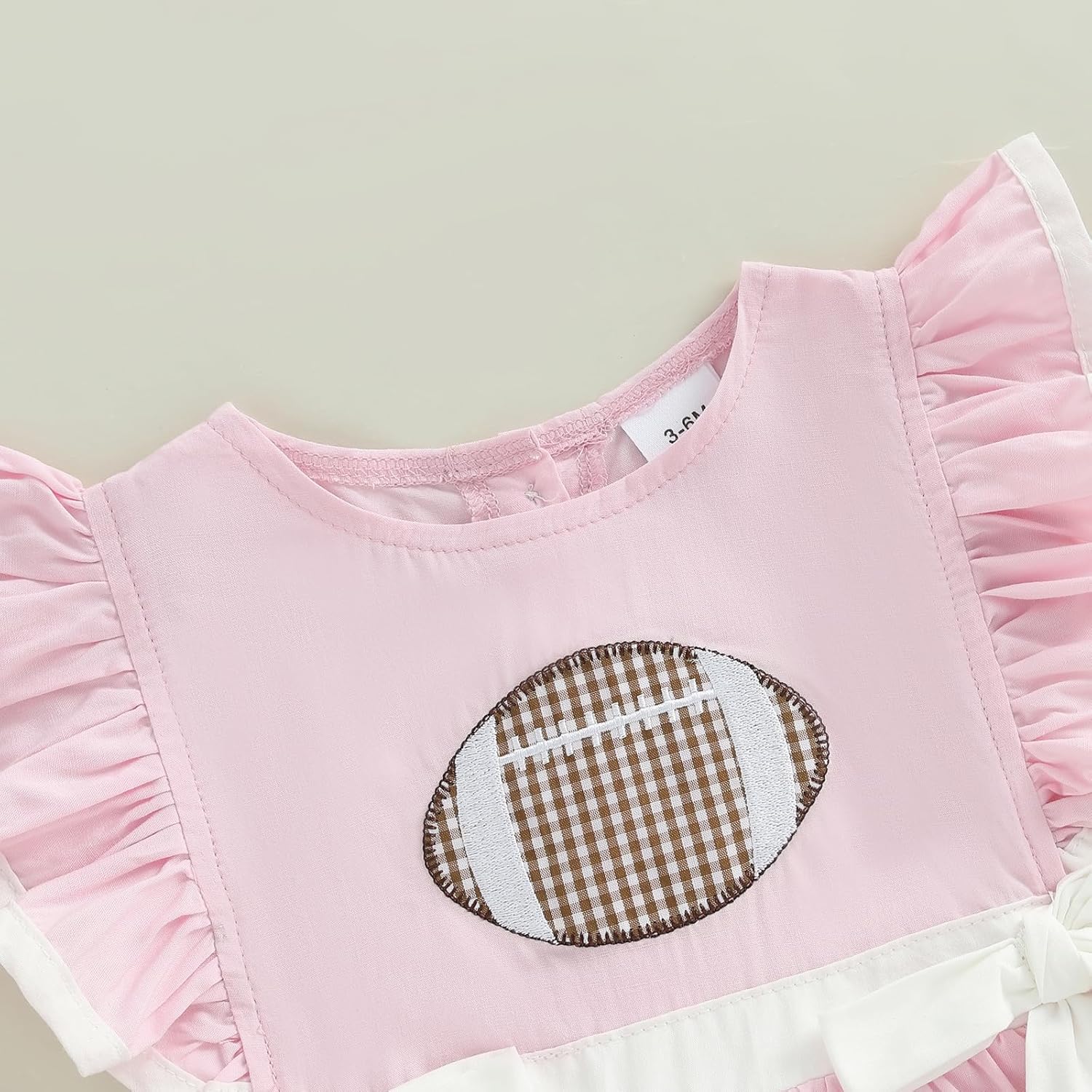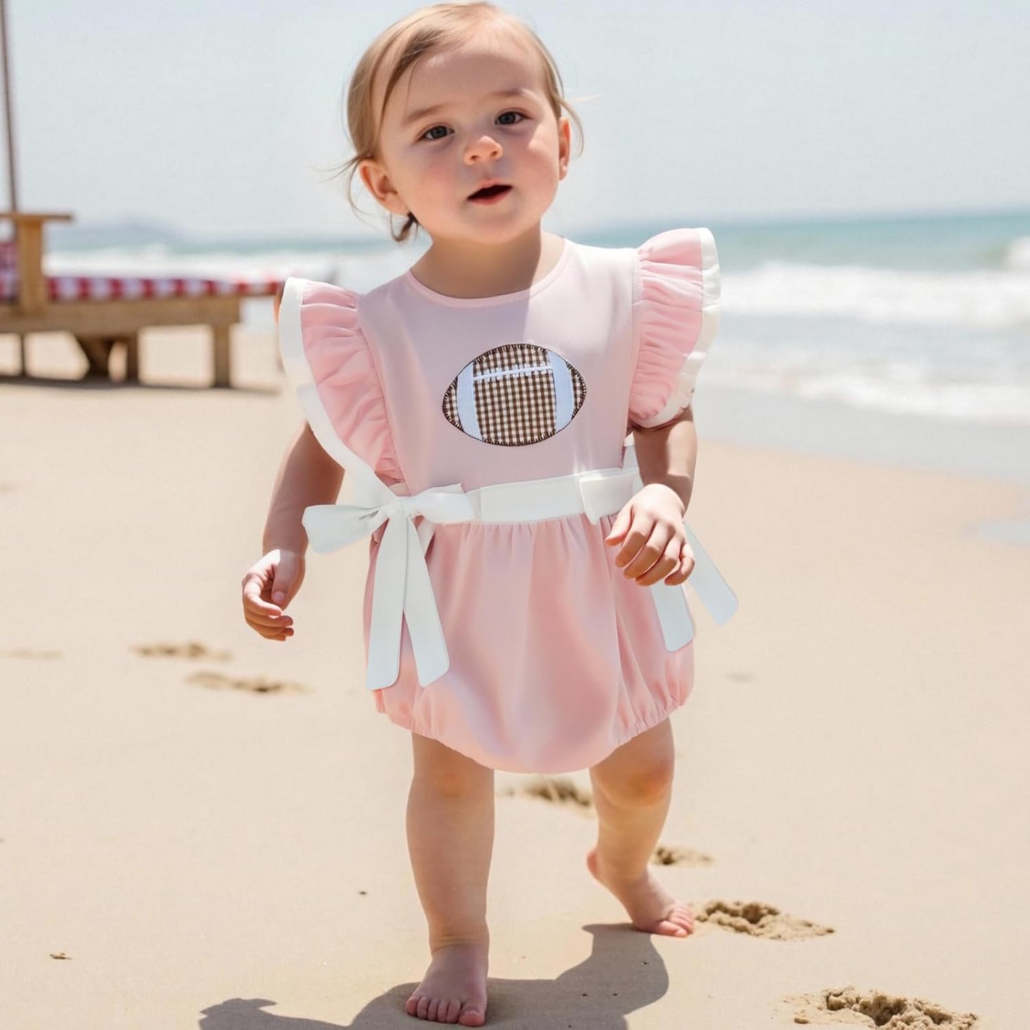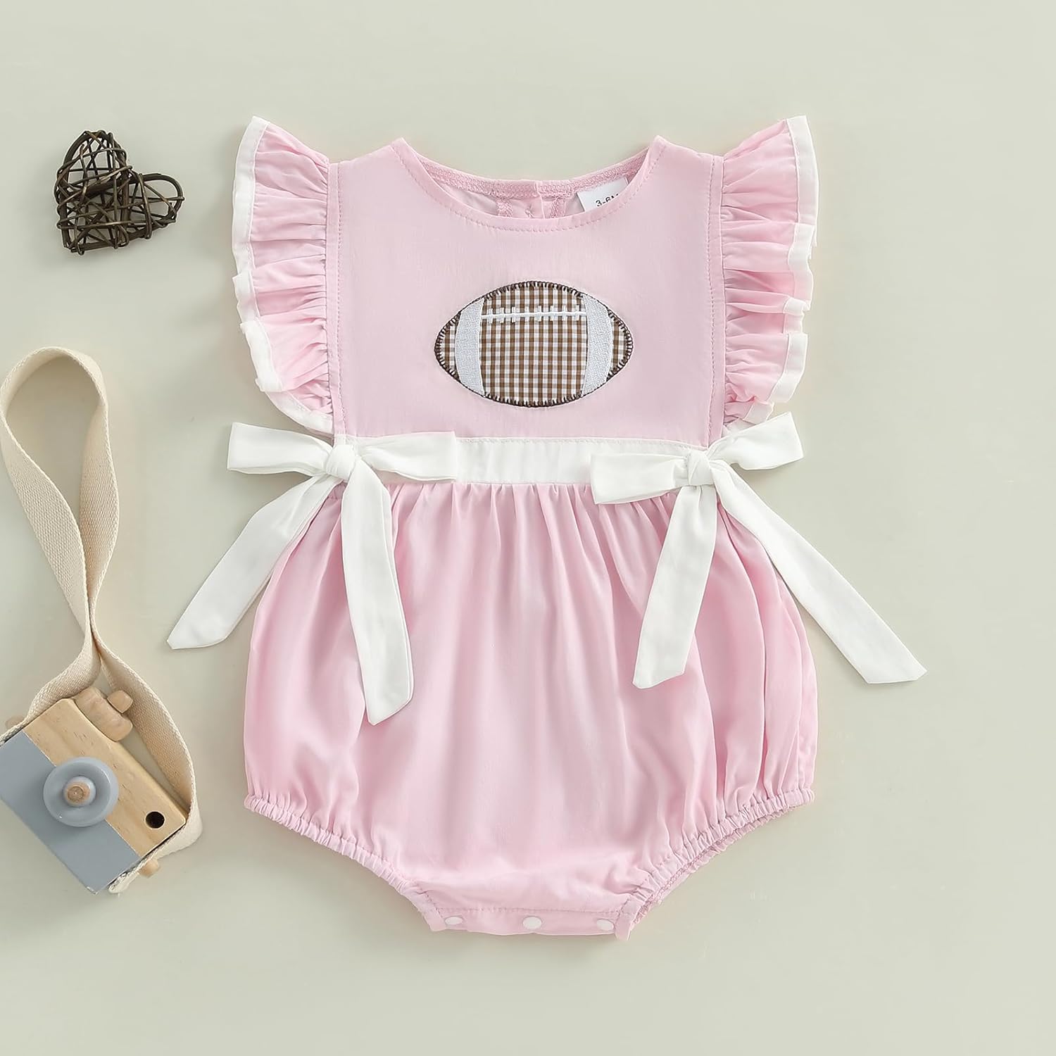 Child Lady Bow Romper Flutter Sleeve Spherical Neck Soccer Embroidery Bodysuit Summer time Garments