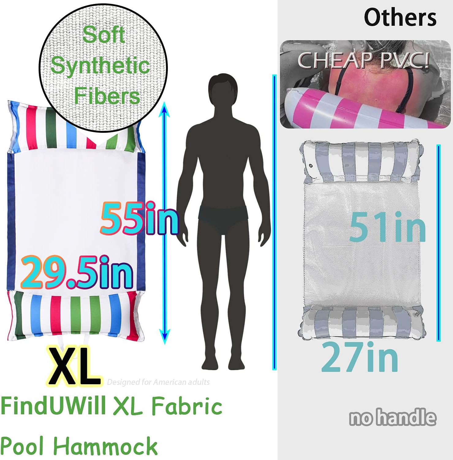 Plus Dimension Pool Floats for Adults: The lengthened pool hammocks (XL longer/wider), are designed as 55*29.5 inches for adults. Plus dimension floats work completely for adults,teenagers beneath 350lbs weight.
