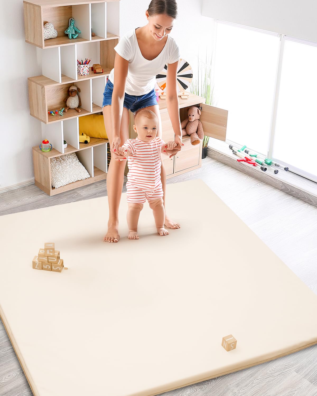 2.【1.2” Thick Padding – Supportive & Secure】 Constructed with 1.2 inches of high-density foam, it cushions bumps and gives consolation throughout crawling, rolling, and early strolling.
