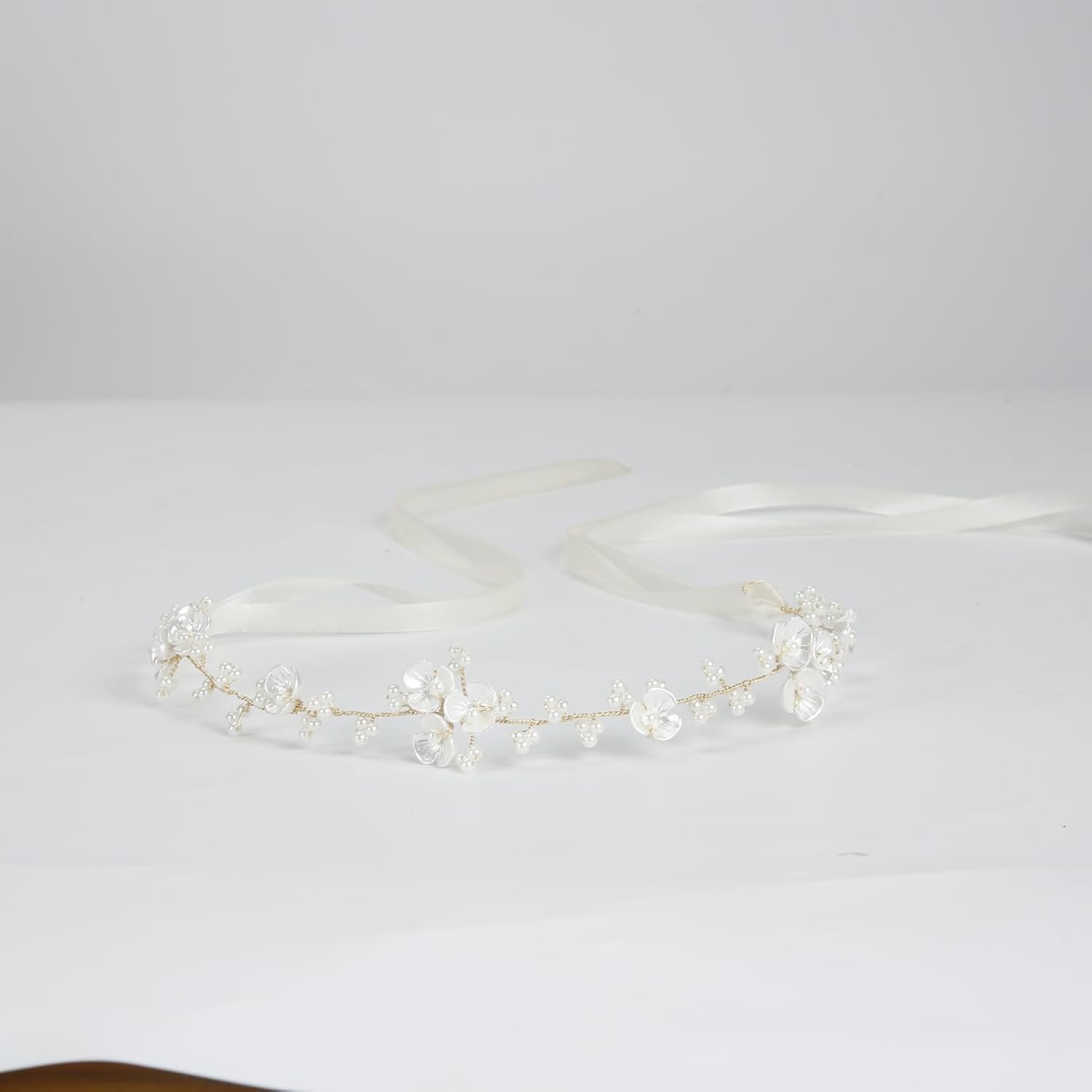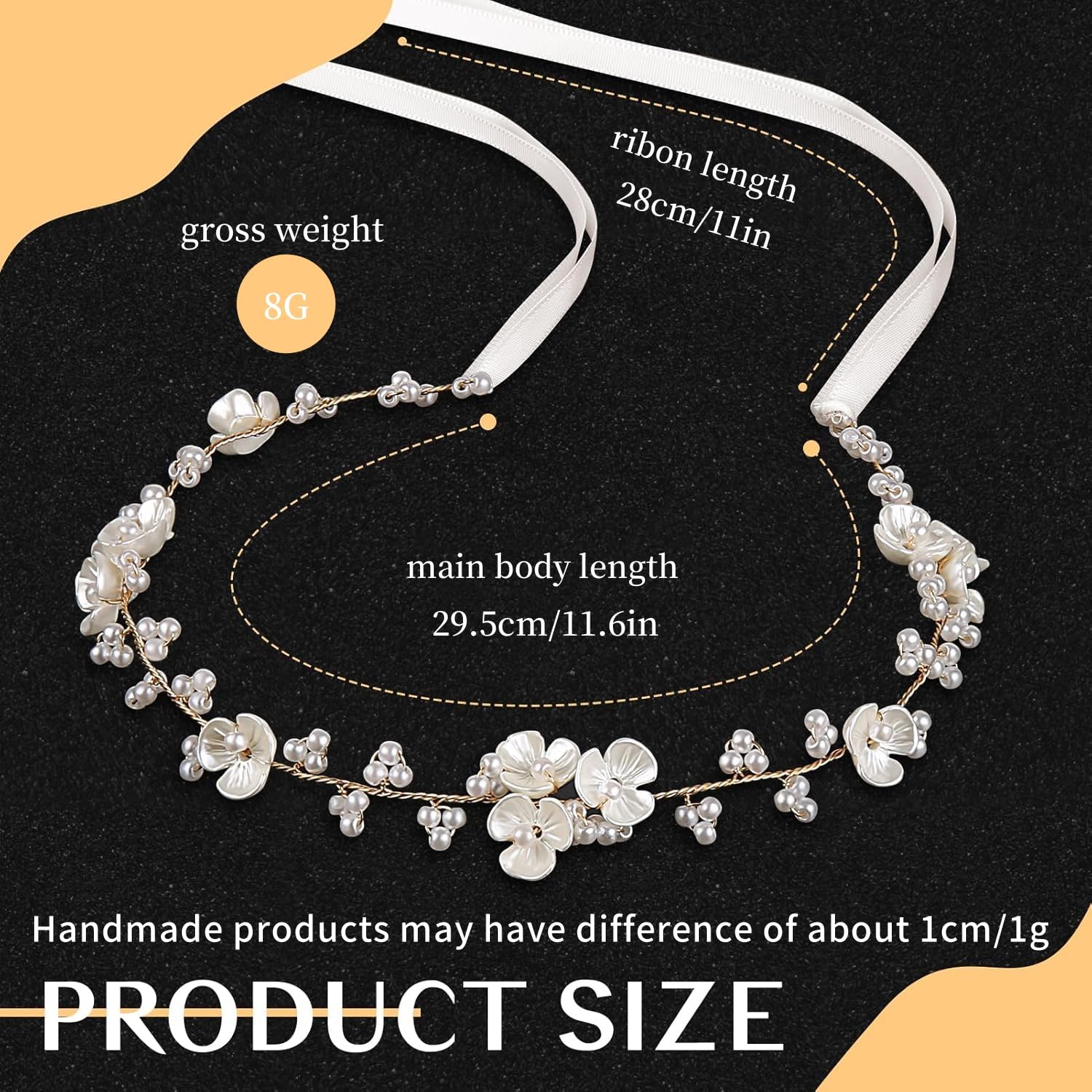【Adjustable Measurement】: The size of the primary physique of flower lady headpiece is round 30cm/11.81in, the total size of the ribbon is about 56cm/22.07in every. The marriage headband is adjustable and bendable, that are made from high quality copper alloy, fake pearls, ribbons.