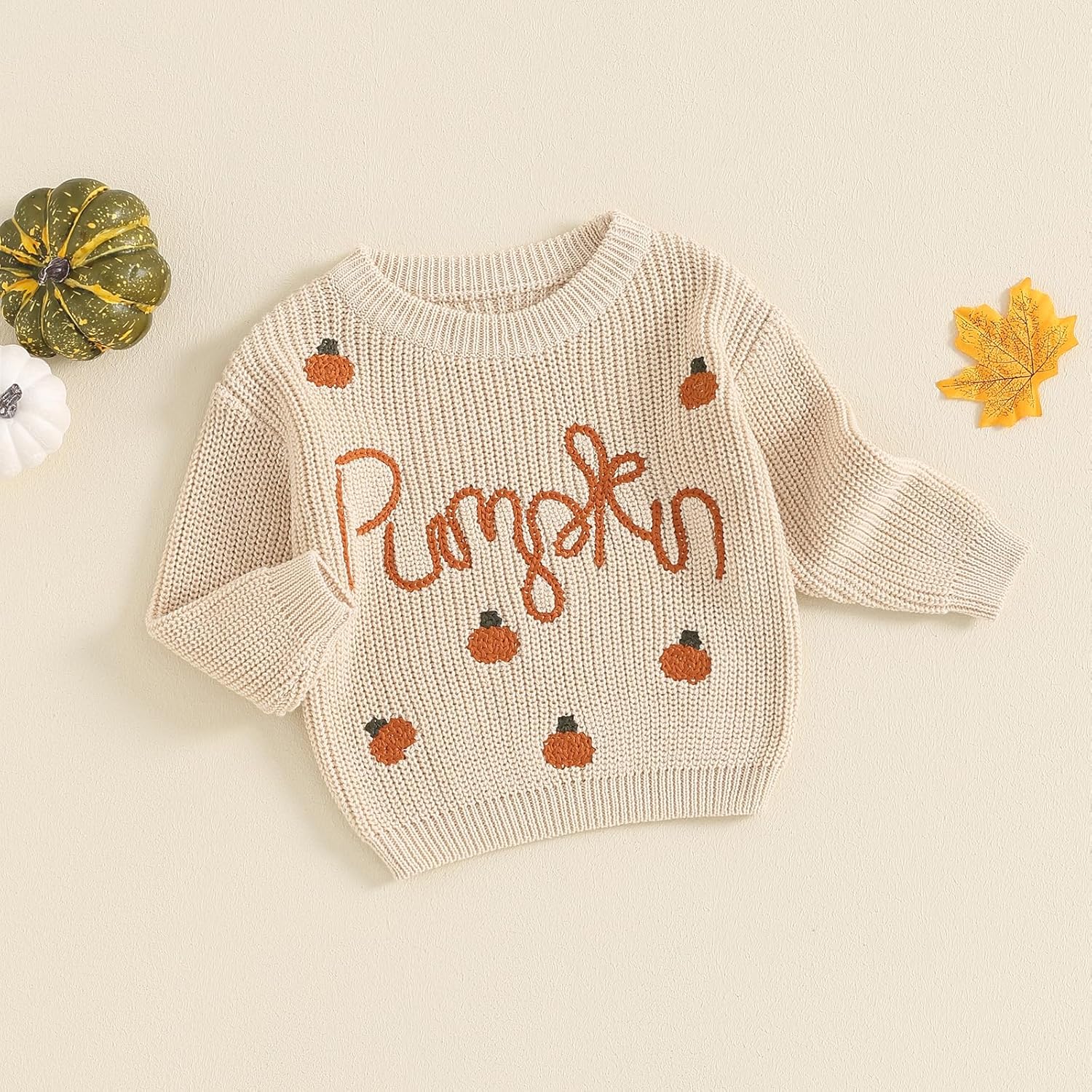Halloween child garments with spooky pumpkin embroidery, knitted cloth, lengthy sleeves, spherical neck; Toddler lady sweater; Child boy sweater, easy and trendy; Good for maintaining your little one heat and comfortable in chilly climate