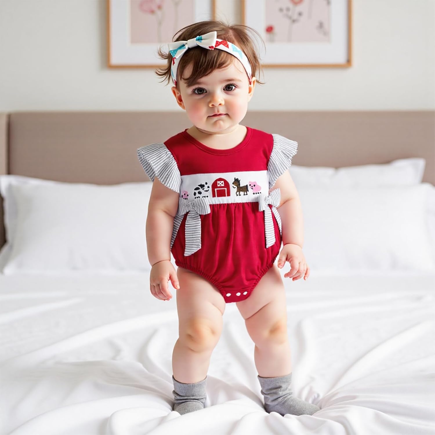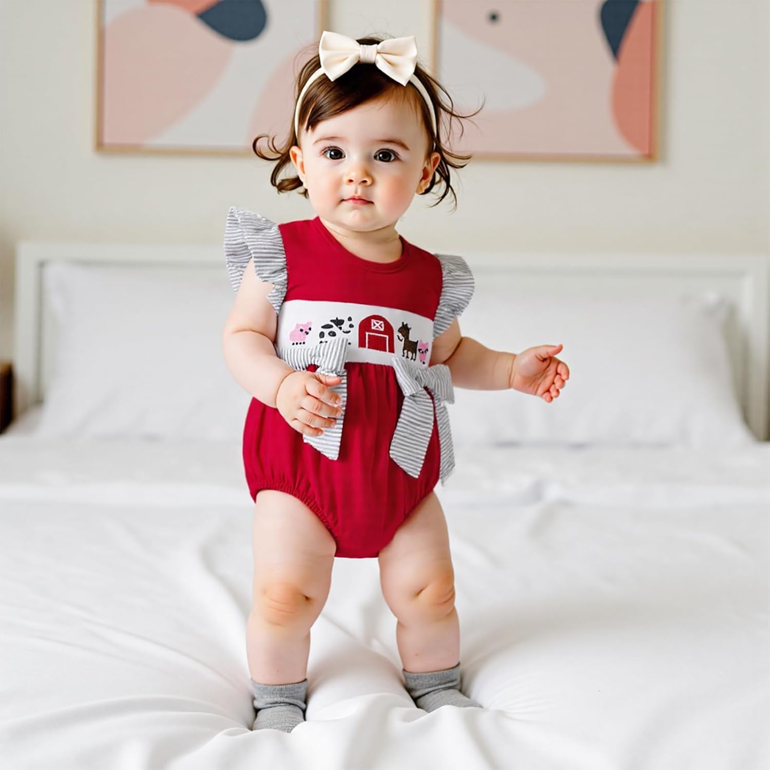 Fourth Of July Child Lady Outfit Toddler Bow Stars Smocked Romper New child USA Bodysuit Toddler 4th Of July Garments