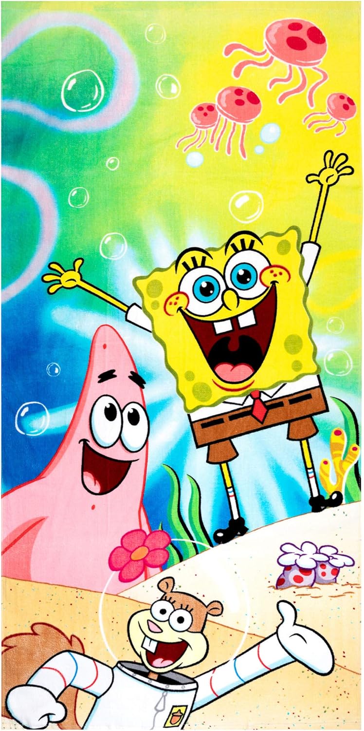 SPONGEBOB SQUAREPANTS DESIGN: Carry the enjoyable and pleasure of Bikini Backside to your bathing and swimming routines with this cool and colourful seashore towel. SpongeBob SquarePants, Patrick Star and Sandy Cheeks from the favored Nickelodeon collection guarantee this animated seashore towel shall be a success with SpongeBob SquarePants followers of all ages.