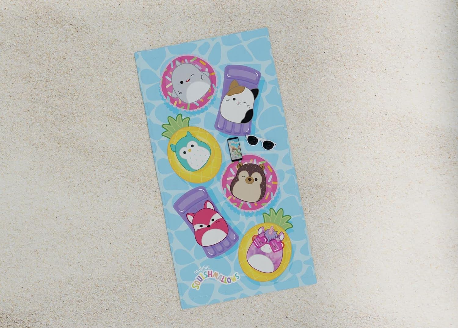 SQUISHMALLOWS DESIGN: Carry the lovable and cuddly Squishmallows to your bathing and swimming routines with this colourful “Poolside Enjoyable” patterned seaside towel. Squishmallows Cam the cat, Fifi the fox, Lola the unicorn, Hans the hedgehog, Winston the owl and Gordon the shark are fortunately adrift collectively on this high-quality towel.