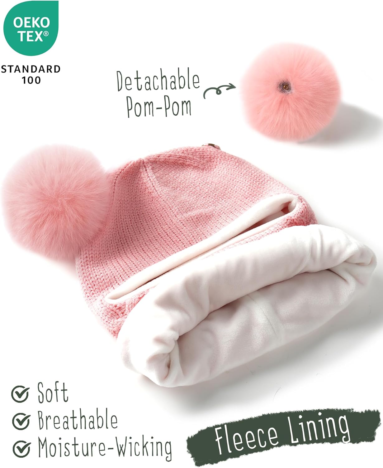 FURTALK Toddler Kids Winter Hat Scarf Set Pom Girls Boys with Fleece Lined Baby Beanie