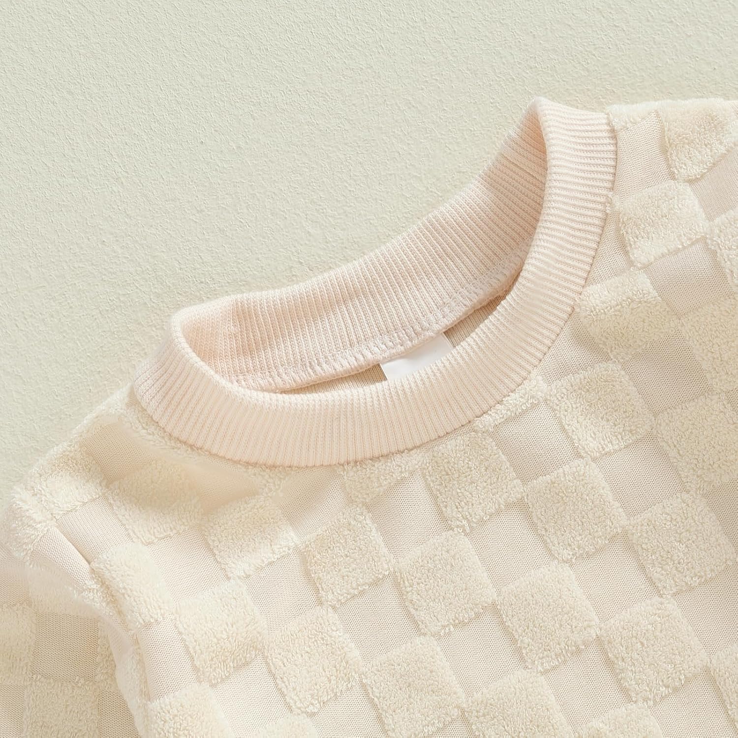 FYBITBO Fall Baby Girls Clothes Newborn Fleece Checker Romper Bubble Oversized Sweater Bodysuit Infant Outfits Cute Clothing