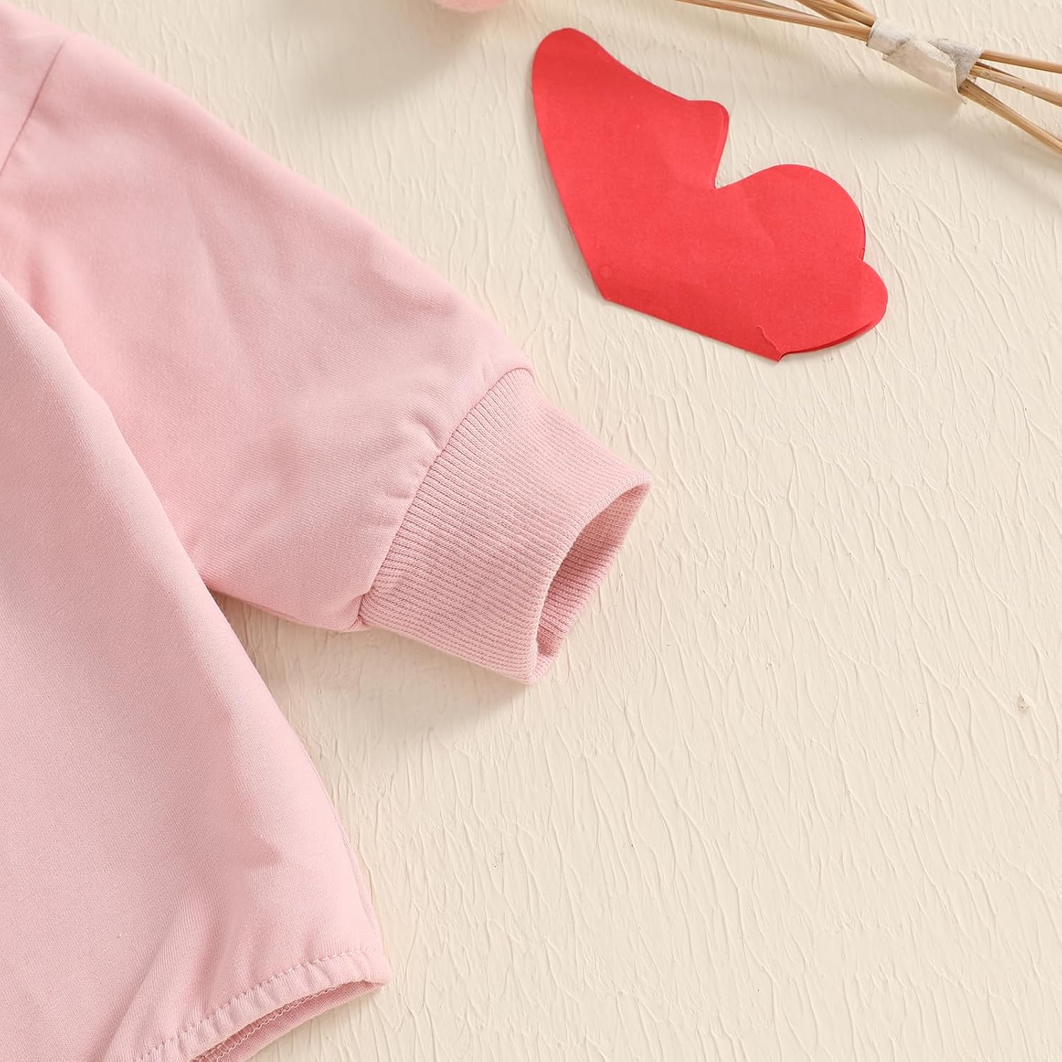 Toddler Child Lady Clothes Bow Print Sweatshirt Romper Bubble Lengthy Sleeve Onesie Valentines Day Outfit Spring Garments