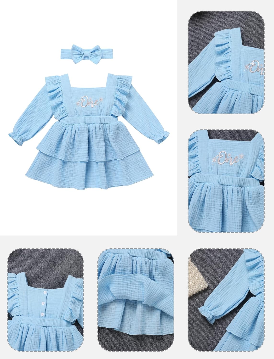 Toddler Child Women Lengthy Sleeve Snowflake Print Tiered Costume and Headband for First Birthday Outfit, Christmas Attire and New child Photoshoot Outfit
