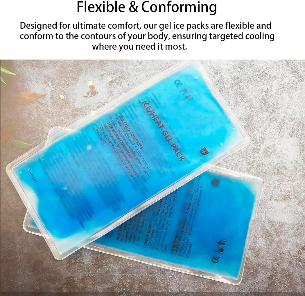 FLEXIBLE GEL ICE PACKS — Ice packs are product of high-quality gel materials that stays chilly longer than common ice packs. Use alternately with small gel ice packs for long-lasting chilly remedy. Mushy ice packs are handy for individuals who want long-term chilly remedy. These gel ice packs are designed for long-lasting cooling aid, making them reusable and eco-friendly.