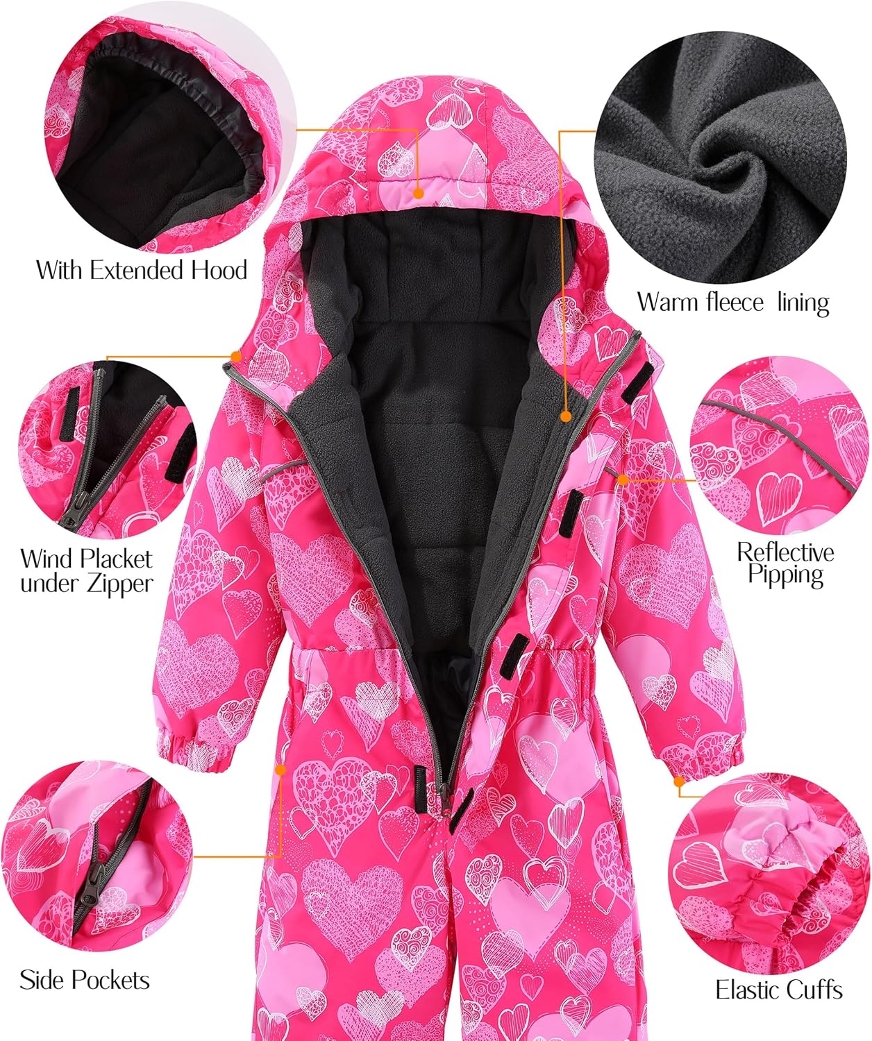 Insulated Windproof Snow Put on for Children: The liner of this one-piece snow go well with is delicate and cozy fleece. The elastic wristband & cuff and ankle gaiters can hold heat in and lock the snow out.