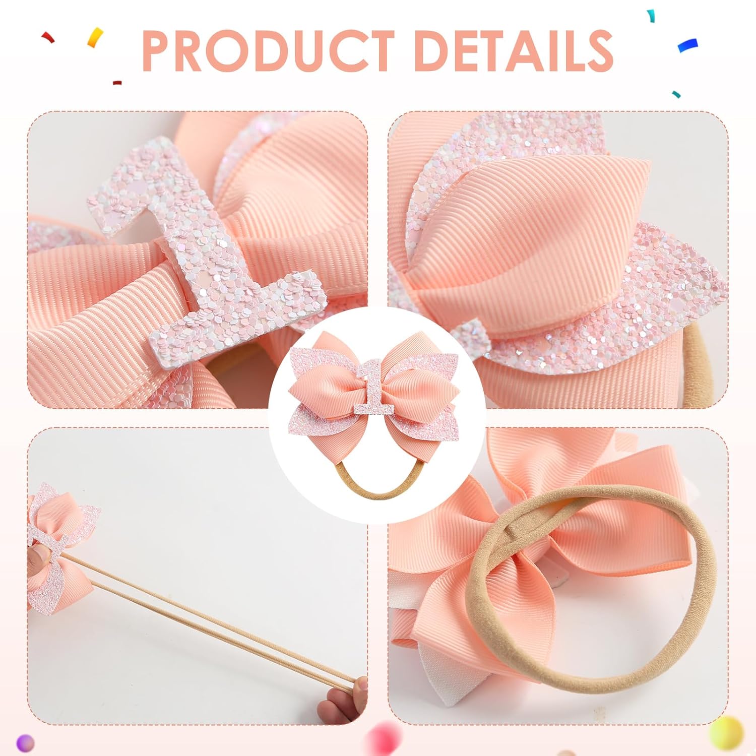 Design: The peach hair bow embellished with glittering sequin quantity and handmade hair bow