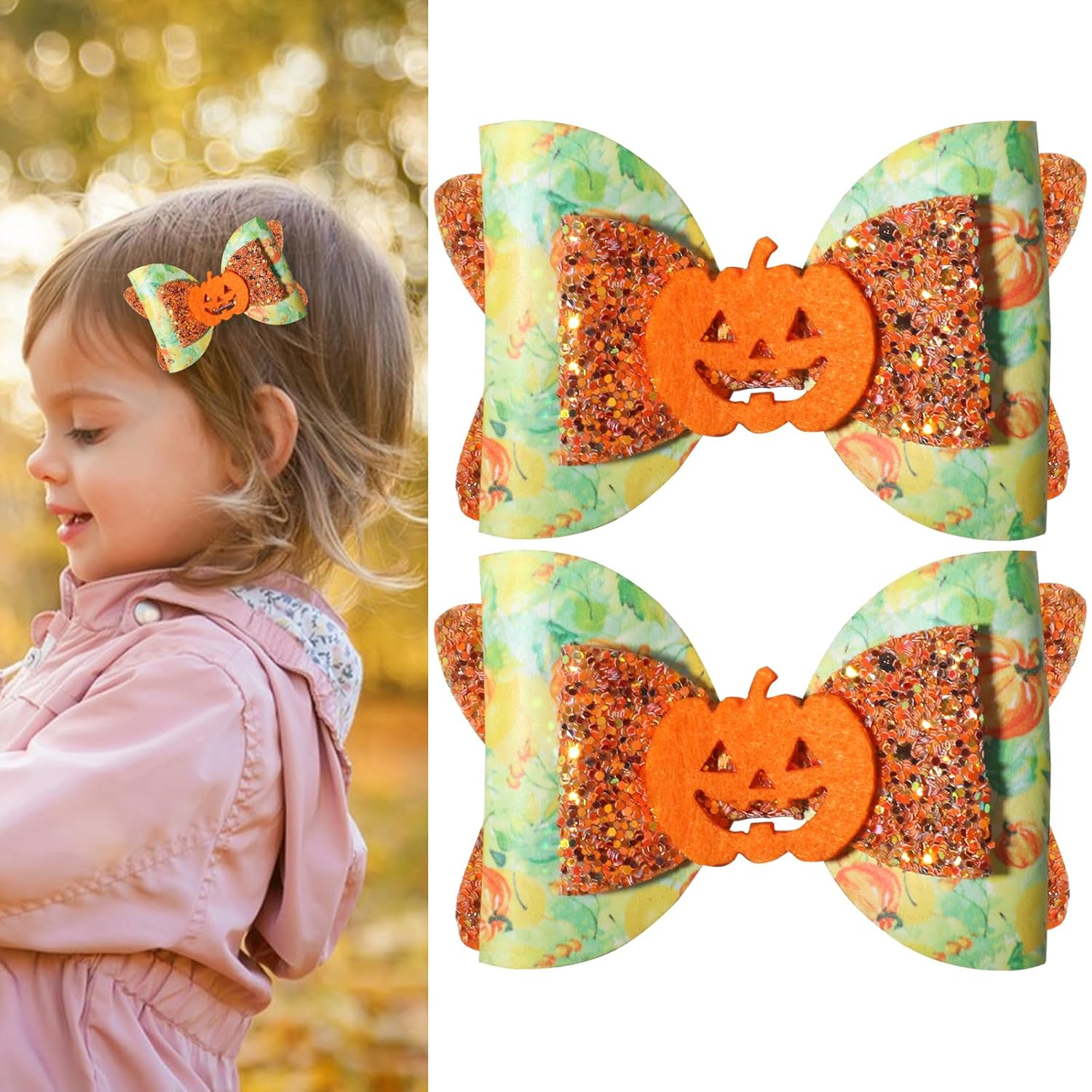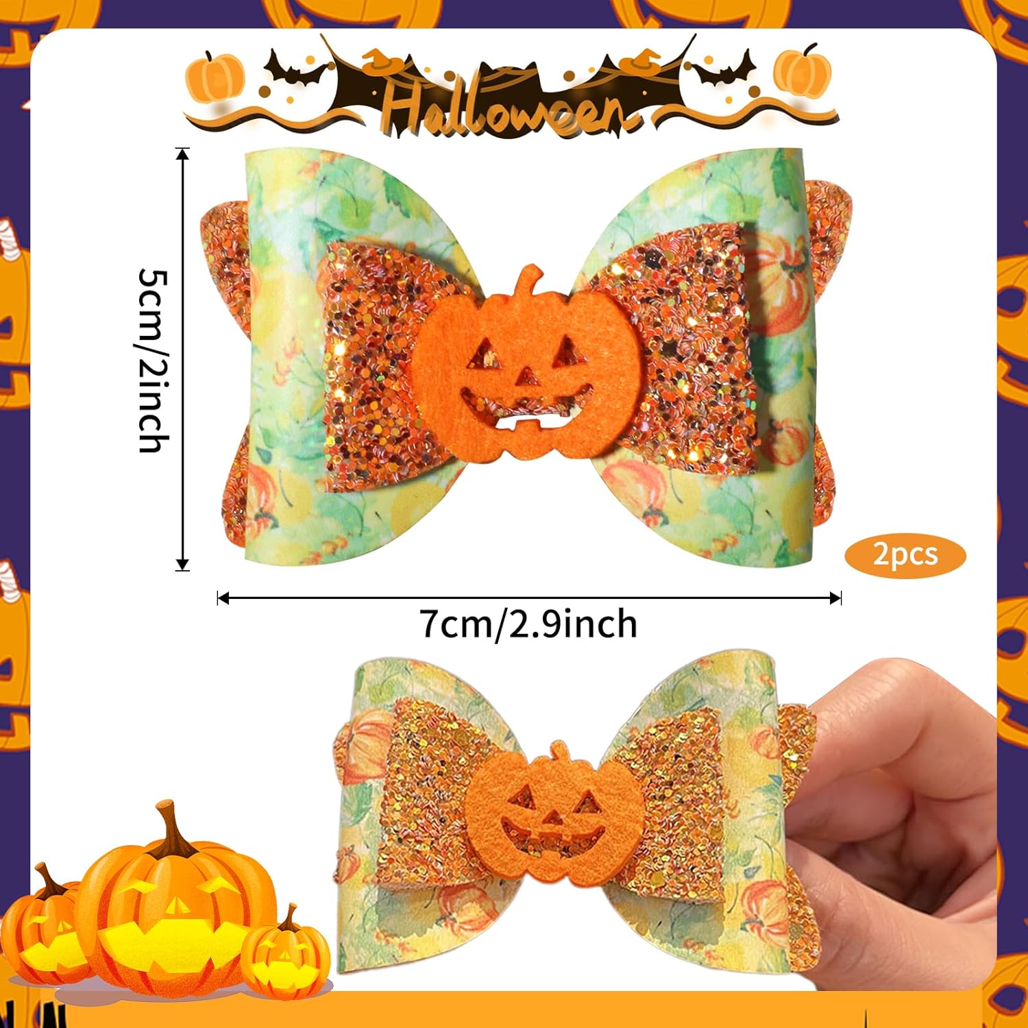 Bundle: The package deal comes with 2pcs pumpkin orange bow hair clip, the scale is roughly 2.9×2 inches.Good for including a contact of Halloween spirit to your costume or outfit.