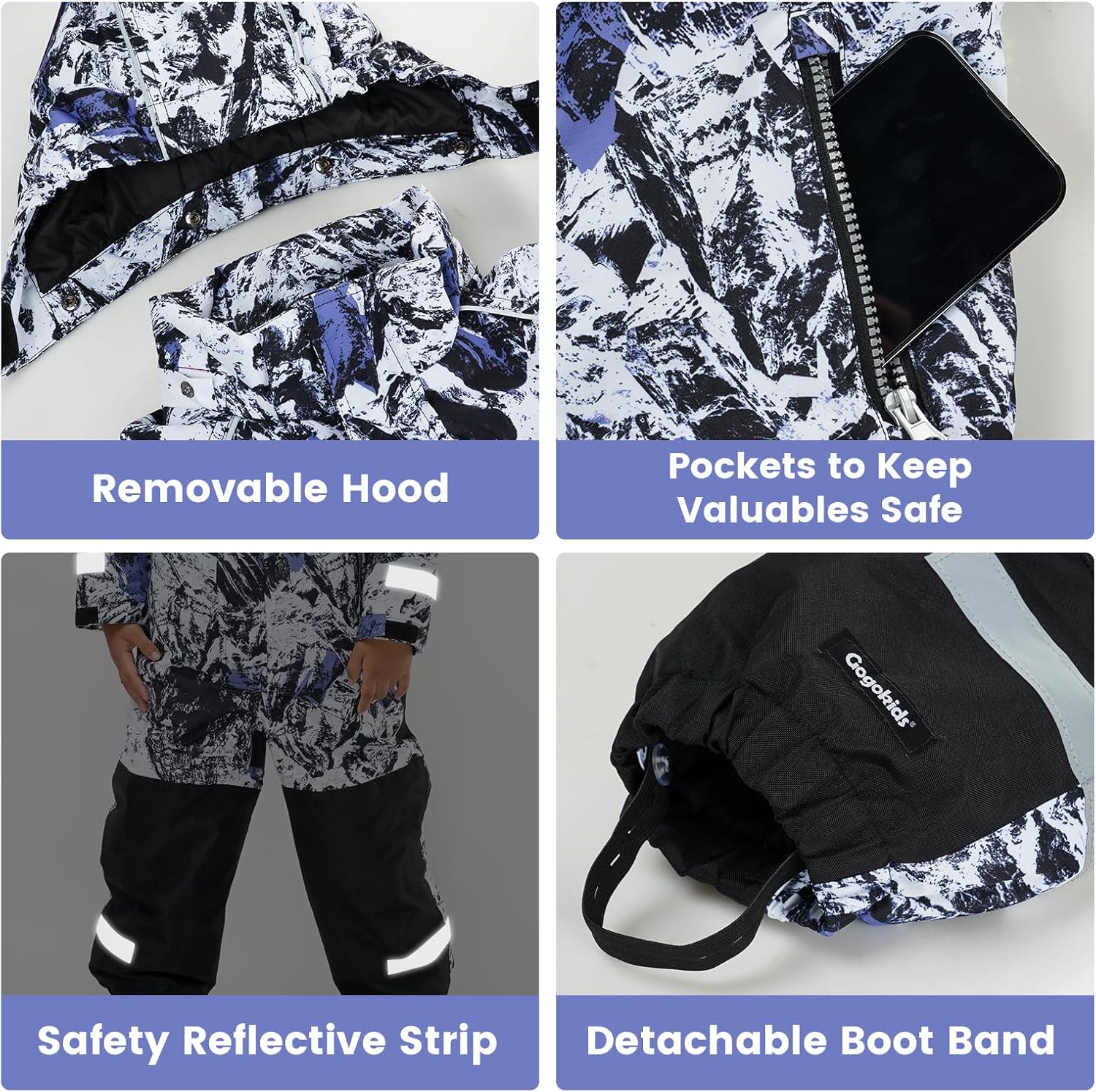 Gogokids Kids Snowsuit One Piece Ski Suit for Boys Girls 3-9 Years, Toddler Waterproof Winter Snow Suits Overalls