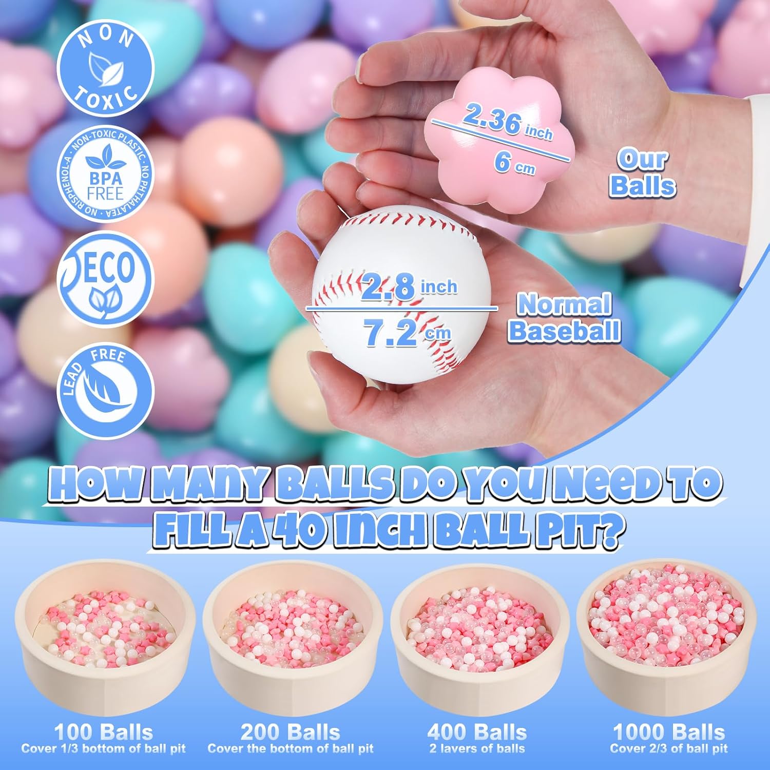 SAFEGUARDED AGAINST SWALLOWING – Designed with a considerate diameter: 2.2 inch-round ball, 2.36 inch – flower ball, 2.36 inch -heart ball, these toddler play balls match completely in child’s tiny palms whereas stopping unintentional ingestion and suffocation dangers. The colour mixtures make them ultimate for decorations, picture backgrounds.
