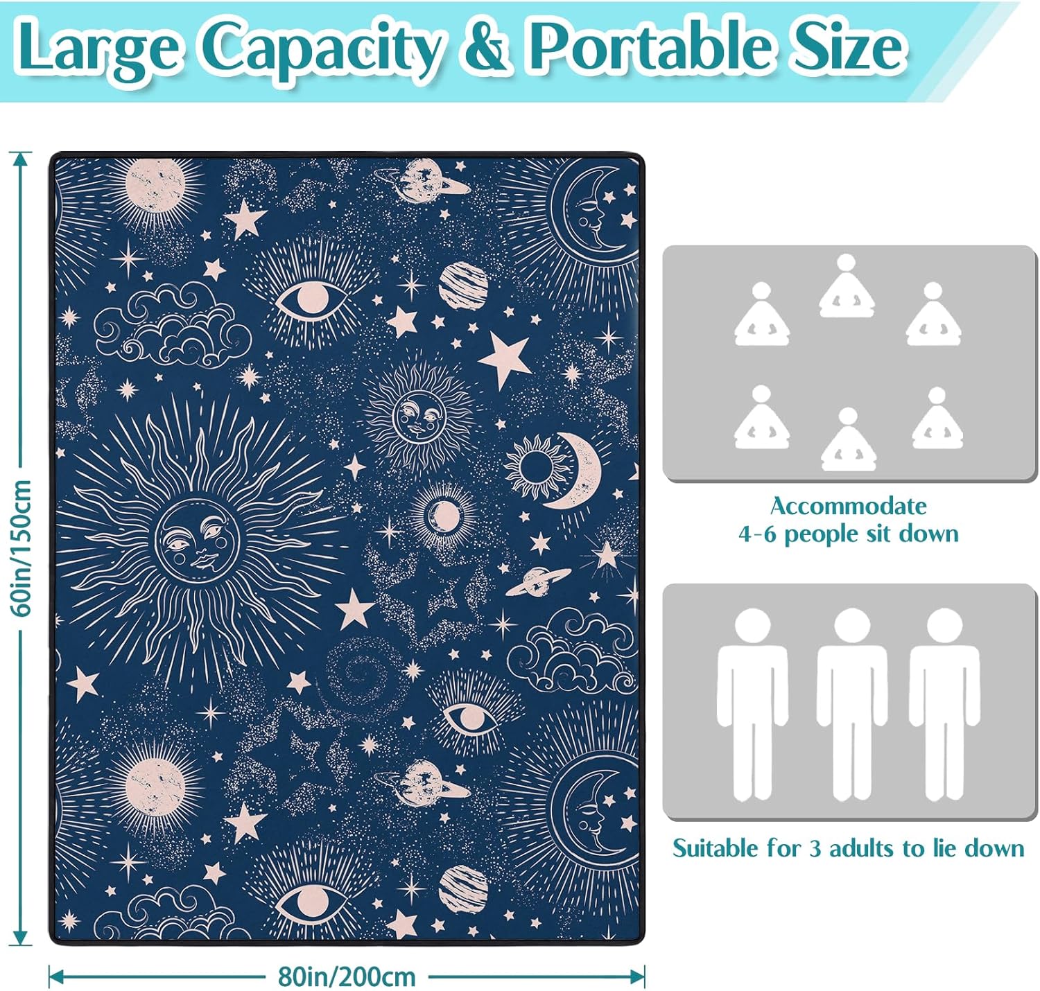Goth Solar and Moon Picnic Blanket Waterproof Foldable Further Massive Picnic Mat Seashore Blanket 60″x80″ for Tenting Seashore Climbing Patio Get together Decor Presents