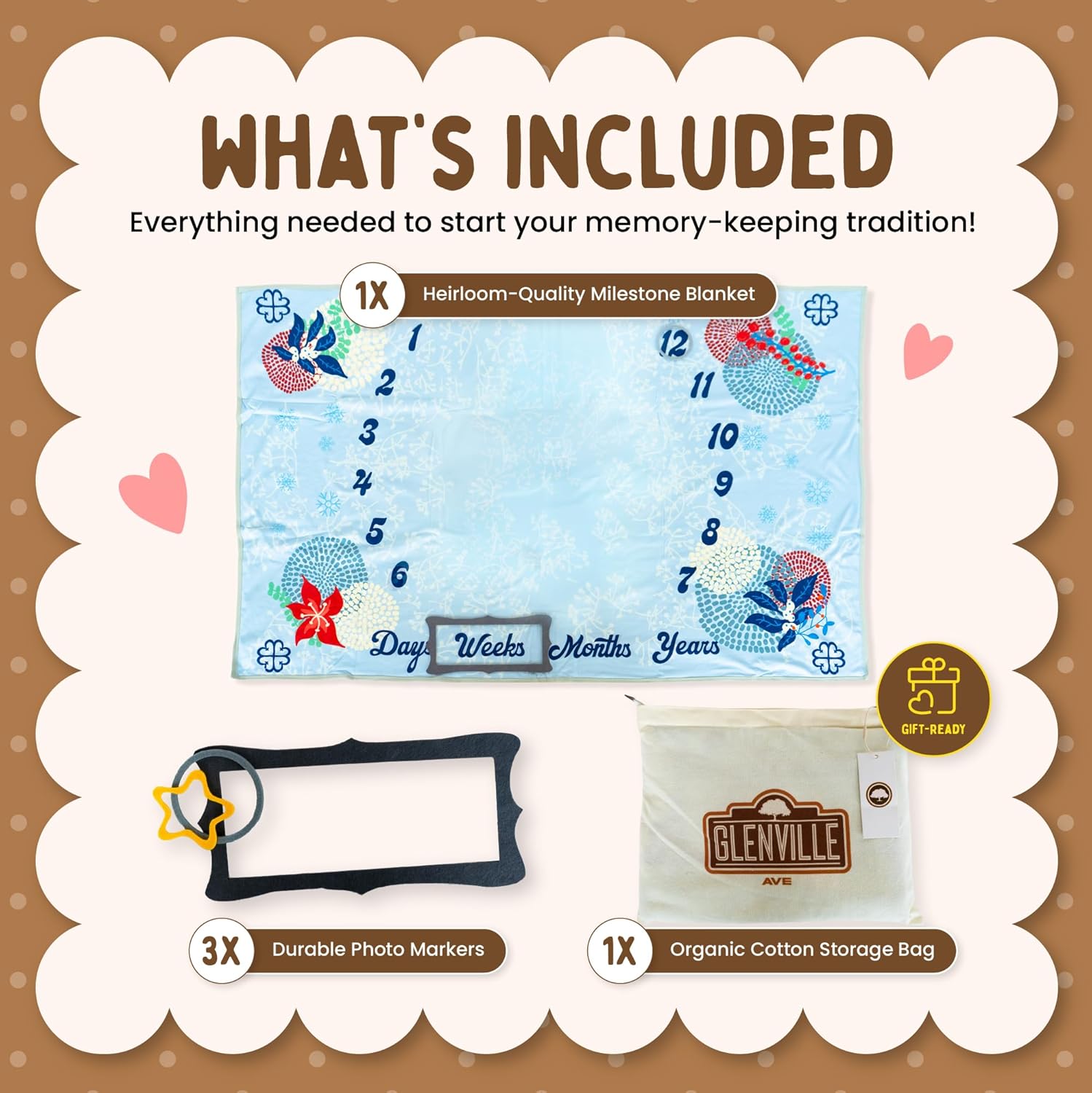 ARRIVES READY TO GIVE AS A GIFT: Superbly introduced in its personal natural zippered bag, this milestone blanket makes a significant child bathe reward that can be cherished for generations. And in contrast to typical child gadgets which might be shortly outgrown, this particular memento creates a legacy of recollections that folks will treasure, and finally cross down.