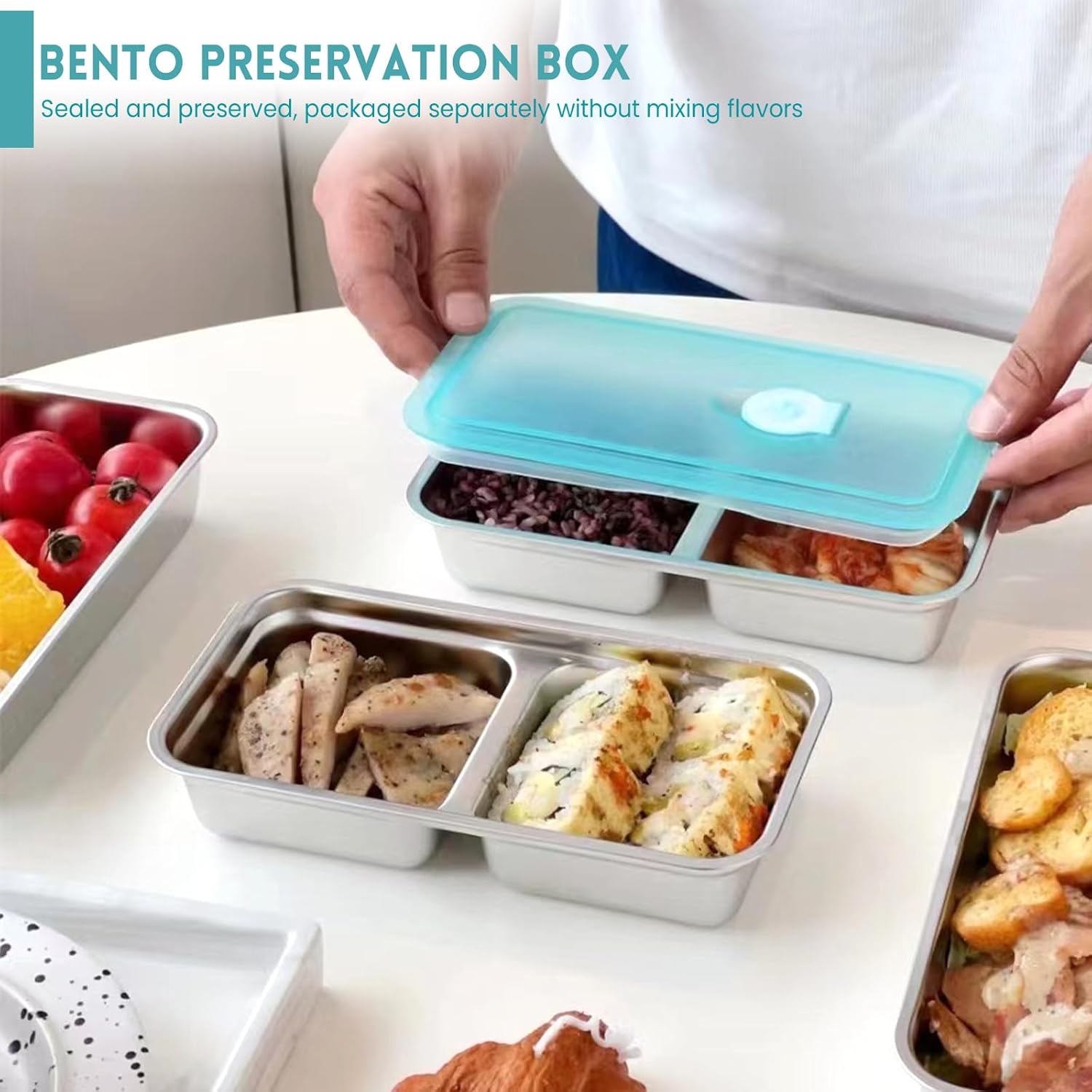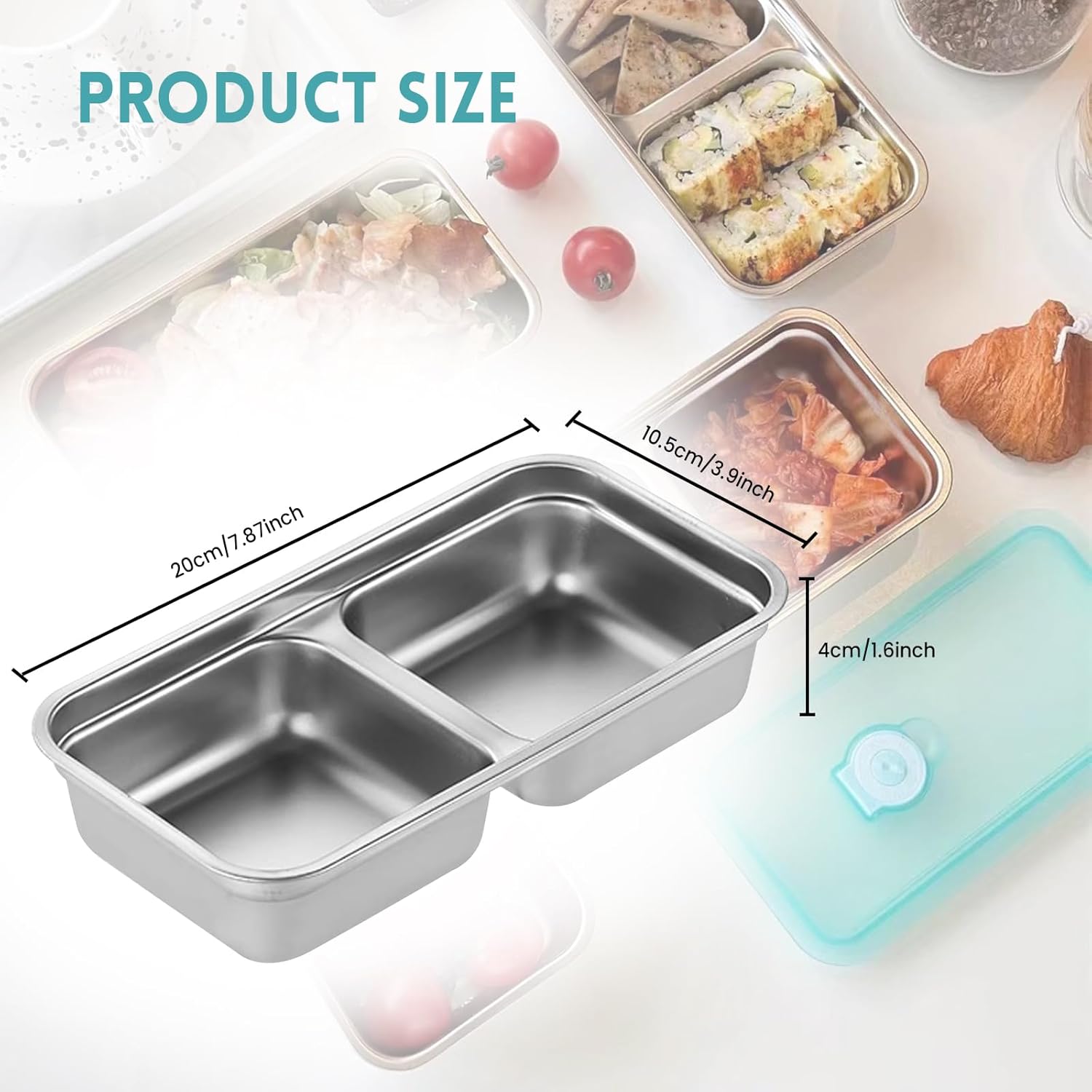 Double Compartment Snack Containers Design: Stainless-steel double compartment snack containers contains a distinctive dual-compartment structure, which lets you simply retailer and carry a wide range of snacks and fruits, successfully avoiding taste mixing, and may be very appropriate for holding dips, fruits, nuts, and many others., which is good for journey, picnics or faculty lunches