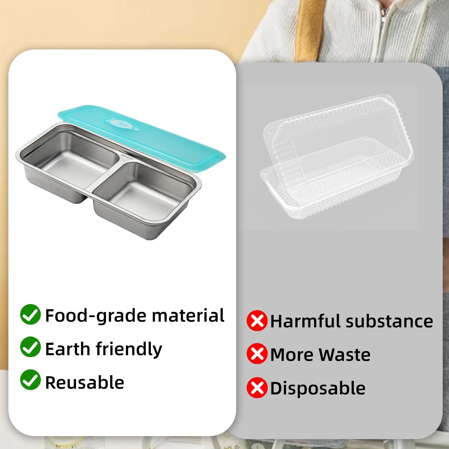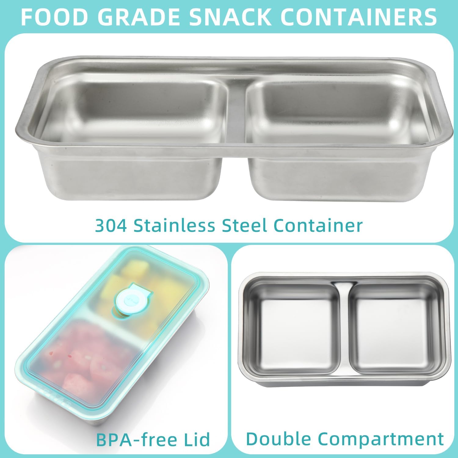 Modern Twin Compartment Design: The reusable snack field container with lid adopts a novel twin compartment structure, which might simply retailer completely different snacks and successfully keep away from odor contamination.